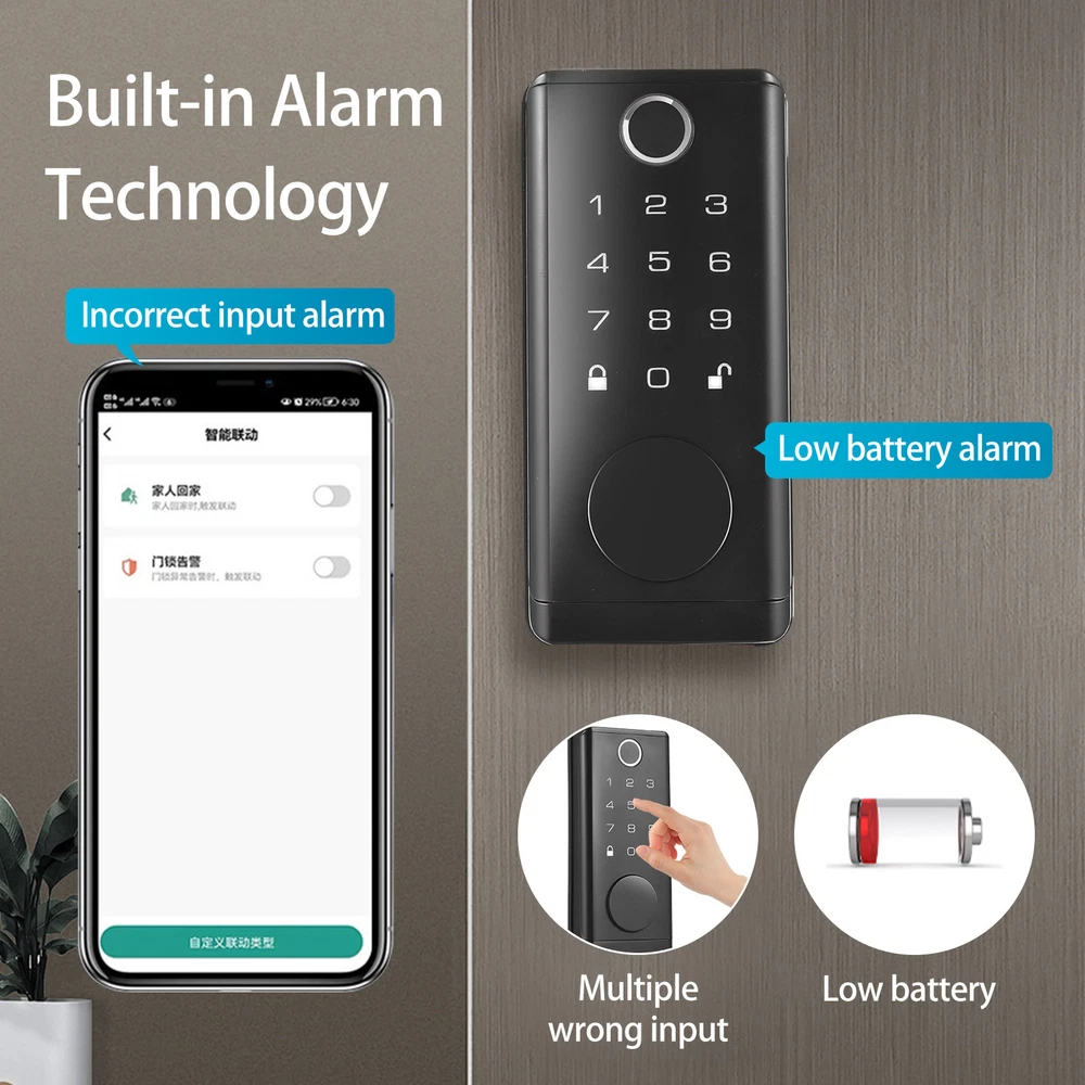 used for: home entry door, hotel, office.etc MPN: Does not Apply Charging method: 4*AA battery(not include) Fingerprint recognition: ≤0.5s ASIN: B0DTJ7WTS1 Type: Fingerprint Lock Types: Electronic Keyless Entry Door Lock Deadbolt Lockset Package Size: 39 * 26.3 * 9cm / 15.3 * 10.3 * 3.5in False recognition rate: ≤0.001% Code storage: 150 sets 5in1: fingerprint, smartphone APP, digital code, IC card and keys Suitable for door thickness: from 1-3/8 inch (35 mm) to 1-31/32 inch (50 mm) 5 Unlock method: fingerprint, smartphone APP, digital code, IC card and keys Support: Support Temporary, Multi-person and Multi-scenario Use UPC: Does not Apply Fingerprint storage: 100 sets Waterproof: IP67 Material: ABS + zinc alloy for: Home Anti-theft Security Brand: Unbranded/Generic Suitable For: Front Door Product color: Black True rejection rate: ≤0.01% Features: Keyless, Electronic, With Key, Easy to Install, built-in Wi-Fi, APP remote control, Waterproof, low battery alarm, Auto Lock gtin13: Does not Apply Package Weight: 2.06kg / 4.5lbs