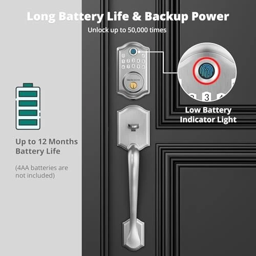 Return Policy Fast Delivery Trusted seller Keyless Entry Door Lock with Handle Set- Fingerprint Door Lock, Electronic Keypad Deadbolt, Smart Lock for Front Door, Auto-Lock & One Touch Locking, Easy Installation - Satin Nickel Product Description Multiple Unlocking Options: This keyless entry door lock solves the problem of being unable to open the door due to forgetting keys. You can use your fingerprints, electronic passwords, or backup keys to unlock, which is very convenient. Secure Fingerprint Unlock: The biometric fingerprint identification technology enhances security and allows users to unlock the door in one second without keys or cumbersome passwords. The smart door lock can store up to 50 user fingerprints, recognizing your fingerprint in just 0.3 seconds for effortless unlocking within 1 second. User-Friendly of Keyless Entry: 's DS10 fingerprint smart door lock handle set offers unparalleled convenience and security features. With up to 50 user fingerprints and 300 access codes, create temporary codes for guests. Additionally, it comes equipped with two spare keys for family members, further enhancing accessibility and peace of mind. Convenience and Security: Easily lock the door with a button without a key, streamlining the locking process. Set the automatic locking to activate within 5-59 seconds, ensuring property security even if manual locking is overlooked. Long Battery Life & Backup Power: With low power consumption, 4 AA batteries can operate for a year or up to 7,000 cycles, eliminating the need for frequent battery changes and saving time. The door lock features a low-battery alert. If the lock runs out of power, simply recharge it with backup power. Note: 4 AA batteries are not included. Voice Guidance: The DS10 smart door lock handle set enhances traditional operation guides with the addition of voice guidance functionality. This innovative feature provides clear instructions to help users unlock or adjust settings accurately. By offering this capability, users can swiftly and precisely set up and operate the door lock, improving their overall user experience. Additionally, if the user finds the voice prompts too loud, they can easily disable this feature according to their preferences. Easy to Install: With just a screwdriver, set up your lock in a few minutes for all US standard left and right-handed doors. No need to select the correct version; automatic recognition s seamless operation without manual adjustments. Shipping Returns Payment Shipping Shipping is FREE to all addresses other than APO/PO boxes in the lower 48 states. All our stock ships from US-based warehouses. Shipped via USPS or UPS (depending on location and package weight) Unless stated otherwise, all orders will ship within 24-72 hours of your payment being processed. Check our feedback to see the great reviews of FAST shipping we offer. Returns Seller does not accept returns Payment We currently accept payment via eBay managed payments only. Once payment is cleared, we will dispatch your shipment within 1-3 business days. Please refer to the "Shipping" tab for more information regarding shipping speed to your destination.