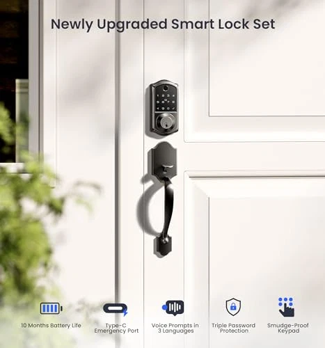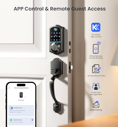 Return Policy Fast Delivery Trusted seller Fingerprint Smart Front Door Lock Set, App Control, Keyless Entry Door Lock with Handle, Smart Deadbolt, Emergency Power Port, Digital Touchscreen Keypad, Auto Locking, Easy Install, Matte Black Product Description Keyless Entry Door Lock with Handle Set: automatic door lock combines timeless style with modern convenience; Its sleek, retro design and durable handle make it a perfect match for any front door, adding elegance and security to your home Five Unlock and Lock Options: Whether it’s app control, fingerprint, password, fobs, or traditional keys, the smart lock lets you unlock and lock your door the way you want, giving you flexibility, keeping your home protected even when you're in a hurry KK Home App Control: Remotely manage access, generate temporary codes, and share keys with trusted users; Ideal for homeowners, vacation rental hosts, and property managers; Supports voice announcements in English, Spanish, and French Absolute Security Assurance: Keep your home secure with AES-128 encryption for biometric data protection; With an IP55 rating, the Keyless entry door lock withstands extreme weather, An emergency charging port ensures you’re never left without access Easy Installation: Skip the hassle of hiring a locksmith—install your new smart door lock yourself in 15 minutes; Fits 99% of doors, both left and right-handed (check your door dimensions for a perfect fit) Seamless Smart Home Integration: Pair the front door lock set with our G1 gateway (sold separately) for full smart home control; Enjoy voice commands, remote unlocking, and activity logs—tailored for modern living Reliable US-Based Support & : With a 1-year warranty and online support, we’ve got you covered; Our customer service team is available Monday-Friday (9 AM–5 PM PST) and 24/7 email support for after-sales assistance Shipping Returns Payment Shipping Shipping is FREE to all addresses other than APO/PO boxes in the lower 48 states. All our stock ships from US-based warehouses. Shipped via USPS or UPS (depending on location and package weight) Unless stated otherwise, all orders will ship within 24-72 hours of your payment being processed. Check our feedback to see the great reviews of FAST shipping we offer. Returns Seller does not accept returns Payment We currently accept payment via eBay managed payments only. Once payment is cleared, we will dispatch your shipment within 1-3 business days. Please refer to the "Shipping" tab for more information regarding shipping speed to your destination.