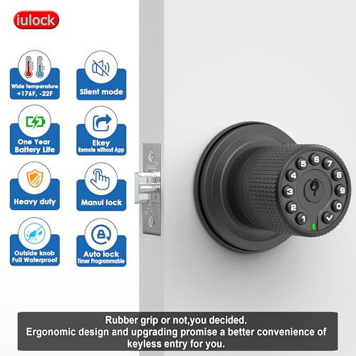 Return Policy Fast Delivery Trusted seller Keypad & Key Smart Door Lock, 50 User Codes, Waterproof, Auto Lock - Matte Black Product Description [Keyless Entry & Stylish]✅This keypad door knob lock assigns up to 50 customizable 1-15 digit codes for family or stuff to experience convenience. The knob has perfect size,come with detachable silicone grip,more snug on handle.Ergonomic design can bring trendy style to modern residential and commercial exterior & interior doors.,suitable for screen, wooden and metal doors,etc. [Premium Security & Durable]✅This electronic code door knob adopts heavy-duty design, sturdy and durable. solid lock cylinder with 2 keys that are compatible with most mechanical keys. Premium metal construction, Plating Finish. It offers the best protection against burglary or break-in. Ideal for home, rental, office, hotel, garage, and apartment, etc. [Feature-rich & Smart]✅The keypad of this door handle has clear numbers and soft backlight, so it can be operated day or night. You can activate passage mode when you don't want it locking. Enable silent mode if you don’t want to disturb. 4 AAA batteries can be used for 18 months,low battery alarm. Use type-c USB backup in case that batteries run out. [Fits most doors]✅This password doorknob fits 1-3/8" to 2-1/2" thickness doors, with a 2-3/8" or 2-3/4" adjustable latch. options rosette rubber seal suitable for more door, Install it by yourself with just a screwdriver in minutes. It is suitable for left or right-handed doors of your bedroom ,front door entry and backdoor, etc. [Reliable & Trusted ]✅IP65 weather resistance. Quality materials and industrial circuit design ensure this door lock reliable. Can work in extreme environments (works great from -22F to 176F, rain and sun) They are awesome gifts for the people you love. Each door lock comes with long-term warranty and 7X24 Efficient service. Shipping Returns Payment Shipping Shipping is FREE to all addresses other than APO/PO boxes in the lower 48 states. All our stock ships from US-based warehouses. Shipped via USPS or UPS (depending on location and package weight) Unless stated otherwise, all orders will ship within 24-72 hours of your payment being processed. Check our feedback to see the great reviews of FAST shipping we offer. Returns Seller does not accept returns Payment We currently accept payment via eBay managed payments only. Once payment is cleared, we will dispatch your shipment within 1-3 business days. Please refer to the "Shipping" tab for more information regarding shipping speed to your destination.