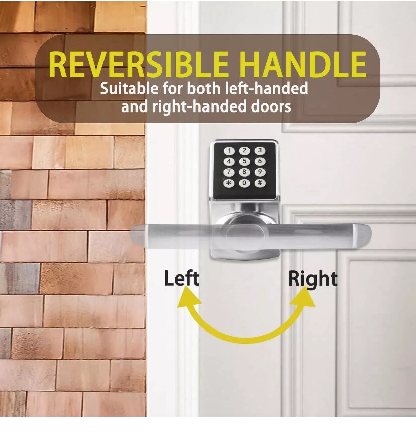 Control Access: This electronic door lock can setup 1 admin code+20 one-time code +78 user code. Grant access, and revoke them again whenever you need to. It’s up to you. Smart Reminder: digital door lock with keypad set will remind you to replace the battery. if worried about forgetting to replace the batteries, keypad door lock with a type-c interface enables connecting an external power bank for emergency power supply; also low battery indication will notify you when the batteries are getting low 3-in-1 Electronic Door Lock: Passcode + Key Fob + Emergency Key.After somebody enter incorrect passcode 6 times, this digital door lock will be automatically locked for 1 minute and anti peep pass code support. Longer Lifespan & More Reliable: Both the front and back panel of this keyless entry door lock with handle are made of Zinc Alloy, Anti-impact & suitable for harsh environments. ( Waterproof Level: IP65; Operating Temp Range: -20℃~70℃ ), customer support following the date of purchase. EASY INSTALLATION: All it need is just a small screwdriver, about 15 minutes you can install the digital locks for doors. Compatible with exterior doors where keyed entry & Fits most standard residential door (the door thickness of 1.3 inch to 2.04 inch).