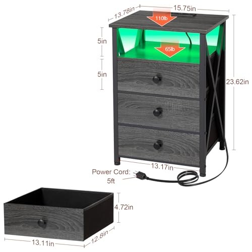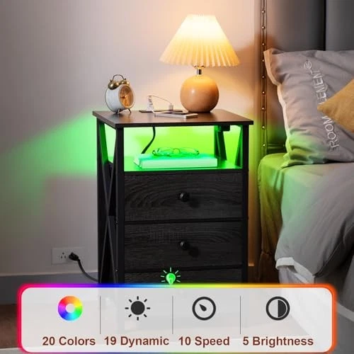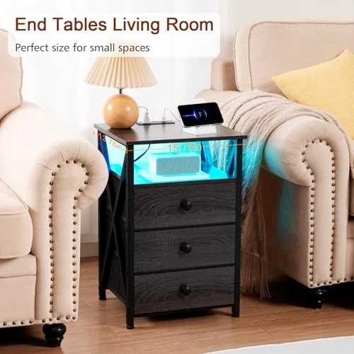 Return Policy Fast Delivery Trusted seller LED Nightstand with Charging Station, Smart End Side Table with USB Port & Power Outlet, Bedside Table with Fabric Drawers for Bedroom, Living Room, Dark Grey, HET053LDG-1 Product Description Versatile RGB LED Nightstand: Adjust the LED lights’ color, brightness, and strobe mode to suit any scene. The soft lighting helps ease nighttime fears, while the vibrant, colorful design adds a warm and stylish, dreamy atmosp to your bedroom or living room Nightstand with Charging Station: This end table features a modern plug-in design to meet your charging needs, complete with 2 AC outlets, a USB port, and a USB-C port. Easily charge your mobile devices quickly with a USB cable while adding a stylish touch to your home Lightweight and Sturdy Design: This night stand is crafted from sturdy particleboard, ensuring easy cleaning and maintenance. The fabric drawer design offers ample storage while reducing weight for easy mobility. Rigorously tested, each table holds up to 110 pounds, and each drawer supports 11 pounds Spacious Nightstand Storage Cabinet: Measuring 15.75" D x 13.78" W x 23.62" H, this bedside table with charging station offers 5 distinct storage spaces. The top panel and open compartment are perfect for decorations, phones, while 3 closed fabric drawers provide ample space for less frequently used items. Ideal for bedroom; office; gaming room Easy Assembly: With a simple structure, numbered parts, installation manual, and included tools, you can assemble the night stand in just 30 minutes. It’s a great chance to bond with family and friends. If you find any missing or damaged parts, please contact us for prompt replacements Perfect Gift: This side table is an ideal gift for your child, reflecting your care and love in their bedroom or living room. Its lightweight design allows for easy movement, while the soft LED light creating a dreamy, comfortable atmosp to accompany them through leisure time and long nights Shipping Returns Payment Shipping Shipping is FREE to all addresses other than APO/PO boxes in the lower 48 states. All our stock ships from US-based warehouses. Shipped via USPS or UPS (depending on location and package weight) Unless stated otherwise, all orders will ship within 24-72 hours of your payment being processed. Check our feedback to see the great reviews of FAST shipping we offer. Returns Seller does not accept returns Payment We currently accept payment via eBay managed payments only. Once payment is cleared, we will dispatch your shipment within 1-3 business days. Please refer to the "Shipping" tab for more information regarding shipping speed to your destination.