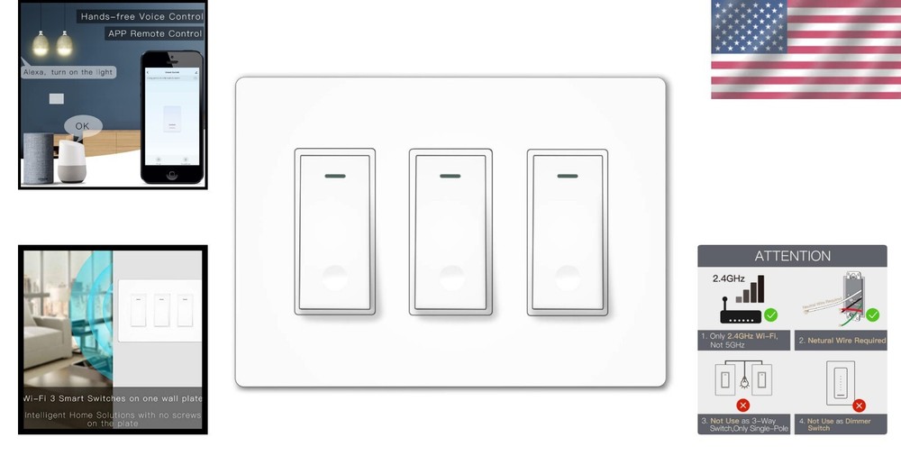 Smart Life App 3-Gang Light Switch - WiFi Remote Control, Timer, No Screw Design ‹ › ‹ › ‹ › ‹ › ‹ › ‹ › ‹ › ‹ › ‹ › Smart Life App 3-Gang Light Switch Experience seamless control over your lighting with our innovative WiFi Remote Control, Timer, No Screw Design Light Switch. Key Features: Easy Installation: Designed to replace any standard in-wall switch (1/2/3 gang), this smart light switch fits perfectly with existing wall plates (2/3/4 gang). Hands-Free Voice Control: Compatible with Amazon Alexa and Google Home, enabling effortless voice commands for a truly hands-free experience. Smart Life App Control: Monitor and control your lights from anywhere using the “Smart Life” APP (iOS or Android)—no hub required! Customize Schedule and Timer: Plan your lighting with a 7 Day Programmable schedule timer, automating on/off settings for lights, fans, and appliances. Elegant Mechanical Touch: With a sleek, screw-less design, it enhances your decor with a tactile experience and quick response time, enduring 300,000 presses. Family Sharing: Share control with family members, allowing multiple users to manage different switches effortlessly with a single mobile app. Why Choose Our Smart Life App Light Switch? Transform your living space with the ultimate in smart technology—our 3-Gang Light Switch is not only a modern convenience but also a stylish addition to your home. With features designed for ease of use and high functionality, it ensures you never have to worry about your lights again. Install it easily, control it with your voice or mobile app, automate your home's lighting schedule, and enjoy the luxury of modern living. Enhance your lifestyle with our exceptional Smart Life App 3-Gang Light Switch—order yours today and step into the future of home automation! Shipping Free & Fast Shipping - We offer free shipping to most of the USA with a normal delivery time of 3-7 days. However, due to the current situation, additional delivery time (up to 3 weeks) may be required for some items. Alternative Carriers - We may use alternative carriers (e.g. USPS, FedEx, UPS, etc.) to ensure your package arrives safely and on time. Due to the use of multiple carriers, we are unable to provide a tracking number automatically. Handling Time - Orders are processed and shipped within 1-2 business days of receiving cleared payment. Shipping Restrictions - Shipping to Alaska, Hawaii, Puerto Rico, Guam, and other US territories may incur shipping charges or delivery restrictions. Please contact us before ordering, or your order can be refunded/cancelled. State Restrictions - There may be restrictions based on your state of purchase. For example, certain items may not be shipped to California due to state regulations. Contact for Tracking Updates - If you require tracking updates or have any concerns about the delivery of your order, please feel free to contact us, and we will be happy to assist you. Return 30-Day Hassle-Free Returns - We want you to be completely satisfied with your purchase. If you are not, you can return the item within 30 days of receiving it for a full refund or exchange. Easy Return Process - To start a return, simply contact us and we will provide you with a prepaid return shipping label and detailed instructions. Restocking Fee - There are no restocking fees for returns. However, the buyer is responsible for return shipping costs if the return is not due to a seller's error. Refund Processing Time - Refunds will be processed within 5 business days of receiving the returned item in its original condition. Payment We accept all major credit cards, PayPal, and Apple Pay for your convenience. Your payment information is secure and encrypted to ensure a safe and seamless transaction. Please complete your payment within 3 days of purchase to avoid any delays in shipping. Feedback Your feedback is extremely important to us. We strive to provide the best products and customer service possible. If you are satisfied with your purchase, please take a moment to leave us a positive review. If you have any concerns or issues with your order, please contact us before leaving negative feedback. We are committed to resolving any problems and ensuring your satisfaction. Contact Us If you have any questions or concerns, please feel free to reach out to our customer support team. You can contact us through the eBay messaging system. We are available Monday to Friday, 9:00 am to 5:00 pm EST, and we will do our best to respond to your inquiry within 24 hours. Buy it now and enjoy a pleasant shopping experience! UPC: Not Set Item Diameter: 6.5 x 4.7 x 1.7 inches Item Height: Not Set Item Length: Not Set Item Weight: 1.6 ounces Item Width: Not Set Product Line: Not Set Unit Quantity: 1 Features: Wireless,Voice Control,Remote Control,Programmable Schedule,Timer,Real-Time Monitoring,Hands-Free Operation Material: Plastic Department: Adults Compatible Product: Smart Life/Tuya App Smart Home Protocol: Wi-Fi Smart Home Compatibility: Amazon Alexa,Google Assistant Labels & Certifications: Not Set Brand: Unbranded Type: Switch Lighting Technology: LED Number in Pack: 1 Current Type: AC Connectors: Screw Voltage: 120 V Output Voltage: Not Set Amperage: 10 A Bulb Shape Code: Not Set Power: Not Set Color: Not Set Power Source: Wall Plug-In MPN: Not Set Model: Not Set Bulb Wattage: Not Set Power Consumption: Not Set Installation Area: Not Set IP Rating: Not Set Style: Modern LED Chip Code: Not Set Pattern: Not Set Year Manufactured: Not Set Country/Region of Manufacture: Not Set LED String/Strip Type: Not Set Manufacturer Warranty: Not Set Compatible Brand: Not Set Compatible Model: Not Set Unit Type: Not Set Personalized: Not Set