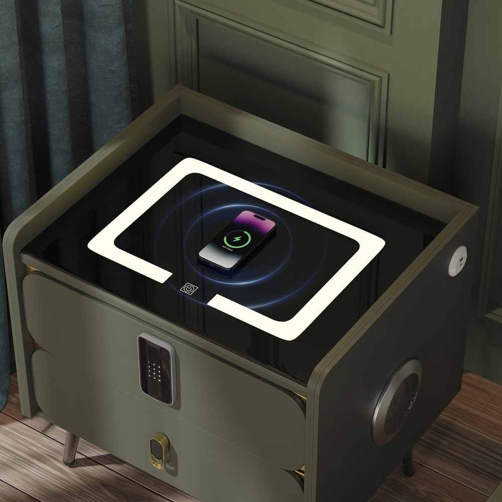 White Wireless Charging Bedside Cabinet w/Lock Bluetooth Speaker Bedside Table
