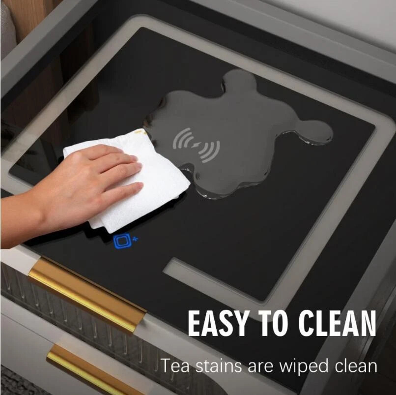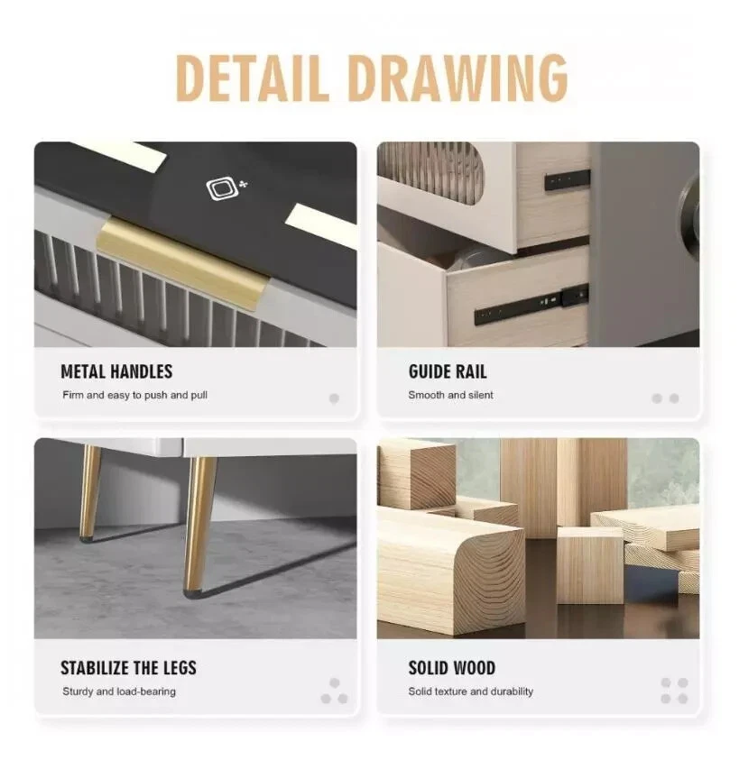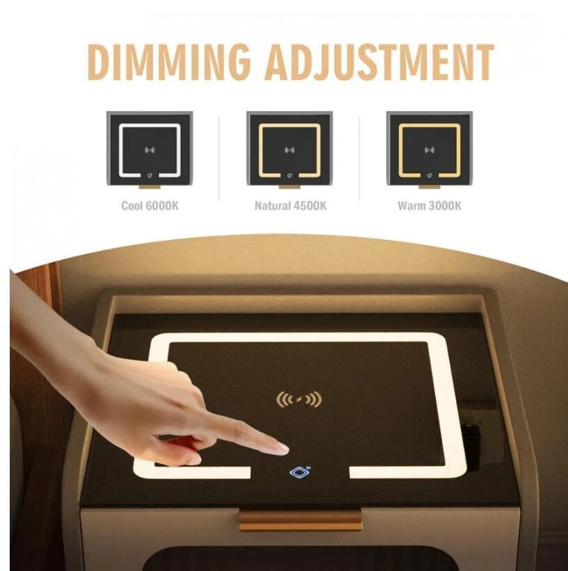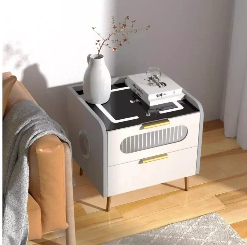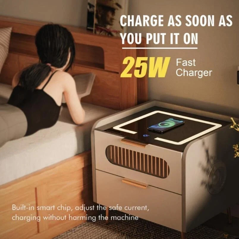 Smart Nightstand Audio Cabinet,3-Color Light,Wireless Charging Station,2 Drawers Check out this 3 in 1 modern multifunctional nightstand, it's made of MDF wood and wrapped with fiber leather on both sides, covered by beige finish. The tempered glass on the top supports wireless charging of mobile phones, and allow you to easily touch the button to open the LED night light, 2 Bluetooth music players are insered on both side of bedtable, enjoy a while of music before slepping. It definitely will be a modern and practical nightstand and improve your room to the next level! Features Modern Design with Great Material: Classic and modern design, the main frame was made of MDF pine wood, and wrapped by medium-soft fiber leather on both sides to prevent getting hurt during accidental collisions in daily life, 4 legs can provide great stability. Storage with Safety: Include 2 drawers to provide good storage, the top drawer is specially designed with wavy decorative glass, making it more modern and artistic, each drawer has a metal handle and silent slides. Easily Charge: The middle of the top tempered glass can support wireless phone charge (only supports mobile phones with wireless charging function, please make sure to put your phone in the middle area of glass). Bluetooth Speaker: Both sides equipped speaker, use Bluetooth in your phone to connect " YUN CUBE" and enjoy a while of music before you sleep, creating a comfortable and romantic atmosphere in your room. LED Night Light: the top glass insert LED lights with a finger touch button, LED night light is very soft and provide 3 color changes (Cool-Neutral-Warm). No Installation: This multifunctional nightstand was pre-installed, only need to drill the 4 legs ( 5 minutes easy task) and plug it in, enjoy it immediately! Detail: Function: Wireless charging+Bluetooth speaker+ambient light Material: Solid wood material+tempered glass, surface leather Package:1 x bedside table nightstand Payment Delivery details Terms of sales About us Contact us Payment You could make payment via: Delivery details Packages will ship via by UPS or USPS within our handling time,once the package is shipped out ,normally shipping takes about 3-10 working days,but due to different cities and states,shipping time will be different. Terms of sales If you any problem about shipping information, or the item you got : Arrived damaged; Wrong item sent; Missing parts or pieces; Doesn't work or defective; Doesn't match description or photos. Pls click "Contact Seller" and send us message firstly. Then we could have a check and will take responsibility to resolve the problem with you in good communication. About us Our company specializing in selling all kinds of light fixtures,such as ceiling fans,chandeliers,crystal lights,retro lamps,pendant light,etc. If there's any light fixture you are interested,pls feel free to contact us for more details. Contact us Normally your message will be replied in 1 business day,If after 24 hours you do not receive our reply,please kindly re-send us the message,because sometimes ebay message system will have technical problem,so your message can't send to us successfully.