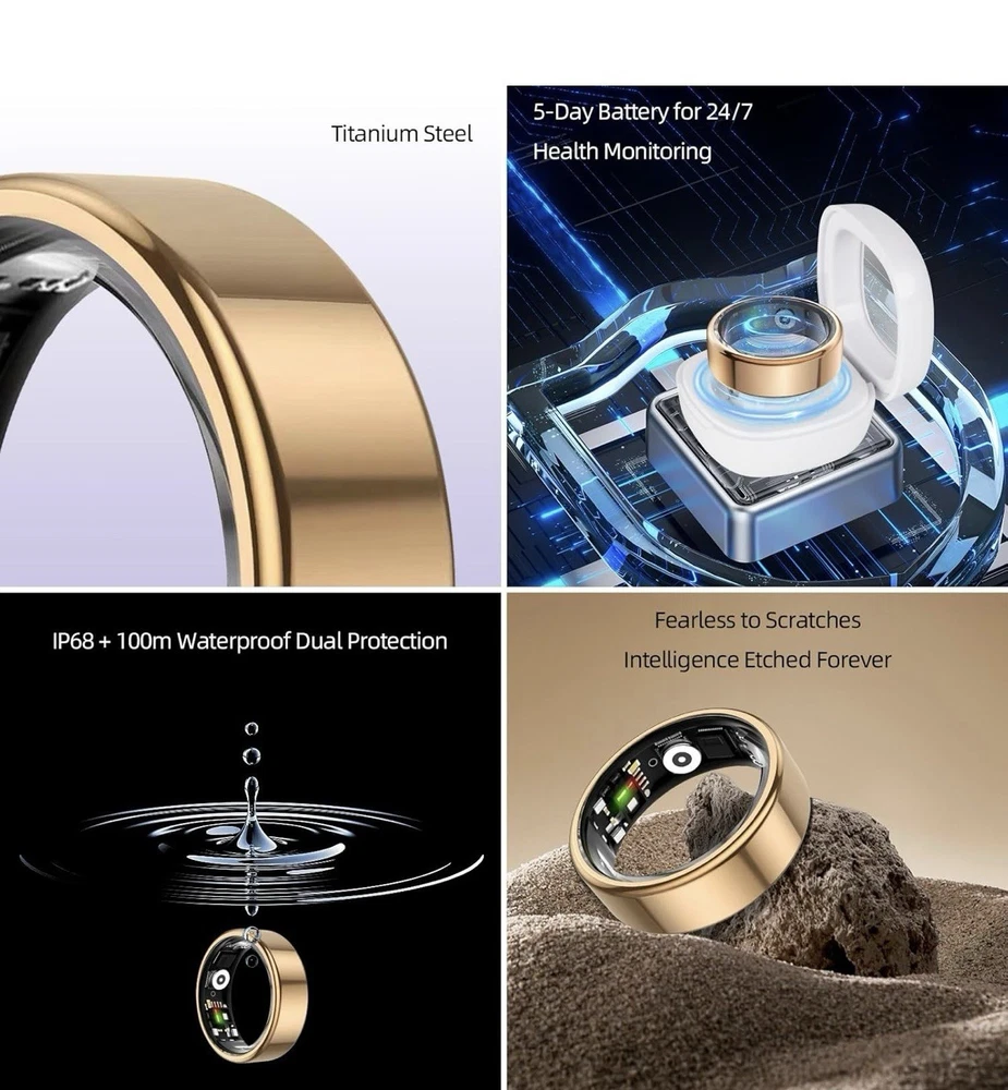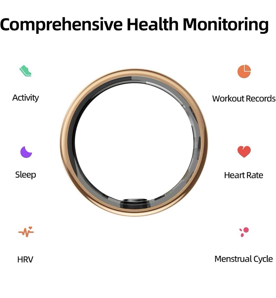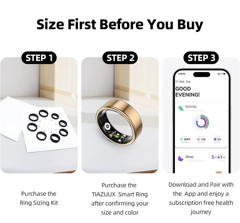 Smart Ring for Women&Men-Activity/Sleep/Heart Rate/HRV/Stress/Women's Health Tracker-IP68 Waterproof/Wearable-No Subscription Fee Required-Compatible with iPhone &Android (Gold, 10) With up to 3-5 days of battery life on a single charge and a portable charging case that provides about 15 full charges, ensures continuous health monitoring for up to 60 days. Compatible with Android / iOS smartphones. No Subscription Fees 】 : With the purchase of the TIAZUUX Smart Ring, you'll unlock lifetime access to all features .Smart Health Monitoring App,Enjoy 24/7 real-time health tracking with .Enjoy all the basic standard features of the TIAZUUX Smart Ring without a subscription, including sleep, activity, stress, heart rate, and heart rate variability.