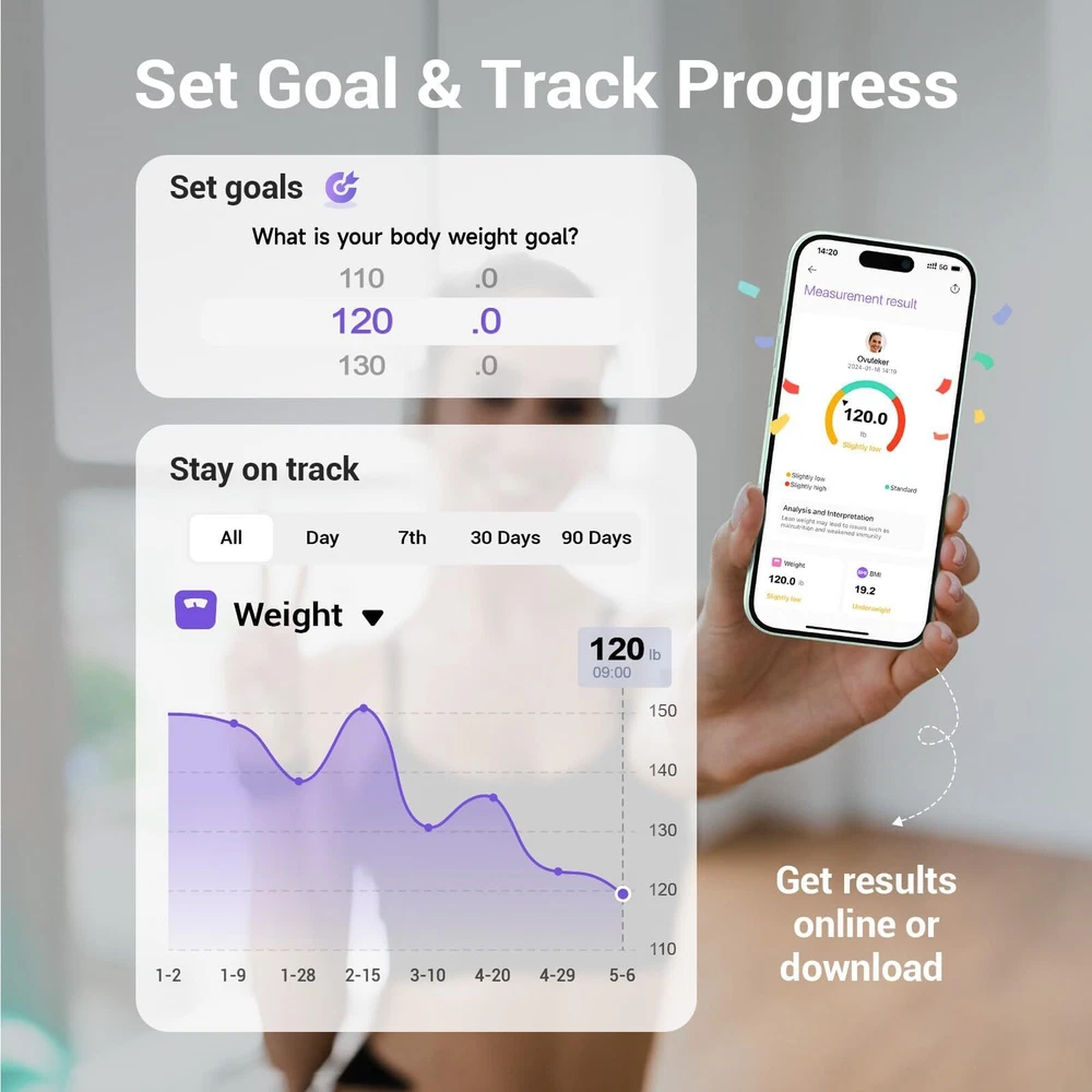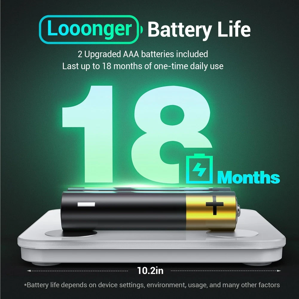 Weigh Smarter: Beyond analyzing 13 biometrics, setting goals, and viewing progress graphs, our scale offers even more intelligence. Connect the app to Alexa for hands-free voice control and quick answers. Rest assured, VeSync prioritizes your privacy 【Professional Free App】's health app is easy to use with our weight scale, focusing on helping you achieve your fitness goals. You can conveniently sync it with your favorite health apps & services: for Fitbit, Apple Health, and Google Fit 【Tracking Beyond Weight】bathroom scale for body weight provides 14 key fitness metrics. You can set goals, and track progress daily, weekly, and monthly so that you can achieve your goals more efficiently and clearly 【Excellent Quality】The batteries included last up to 18 months. With upgraded electrodes and sensors that have undergone 20,000+ factory tests, smart scale ensures extraordinary accuracy. The tempered glass, rounded corners, and anti-slip pads provide safety 【Easy & Convenient】scale with bmi, body fat, muscle mass features an easy-to-read display with automatic on/off, low battery, and overload indicators. Choose between lb/kg units for effortless weighing convenience 【Multiple Features】digital scale offers 3 features. Unlimited Users Mode makes it convenient for the whole family. Zero-Current Mode ensures a safe weighing option, and the Family Mode tracks the growth of babies or pets