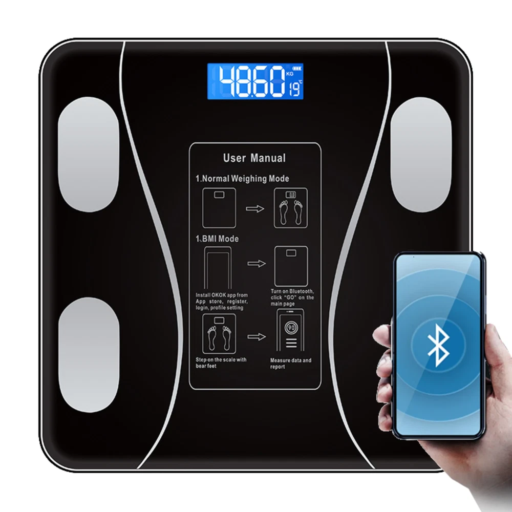 Specification: Weight Cap acity: 180 kg (40 0 lbs) Platform Ma terial: 6 mm T empered Glass Units: Kg / Lbs Dimensions: 10. 2 "x10.2 "x1 " Display: 5 digits LCD/L ED Division: 1D =0.05Kg/0.11Lb Powe r: 2x1.5V A AA battery There is a button located on the back of the scale. By long-pressing this button, you can turn the electronic scale on or off. A short press allows you to switch the displayed weight unit between pounds (lbs) or kilograms (kg). Overload Indication: "oL" scale overload, (Maximum weight capacity is indicated on the scale.) Please step off to avoid damage. Low power indication: "Lo" If power is low. Please install new battery. Error Indication: "Err"If the scale displays "Err" when you step on the scale, there is an error. Please re-test. Best working temperature: 5-35°C Storage temperature: -10-60° Feature : Get 13 body essential measurements – This body fat analyzer instantly measures Body Weight, BMI, Body Fat%, Water %, and more to help you stay motivated along your fitness journey and help you reach your goal faster. Weigh yourself anytime, even without your phone on hand. The data will sync to the app once your phone and scale connect again. Syncs with fitness apps – Designed to record and display body composition and weight changes, sync your body composition to your smart phone and keep track of your health and weight goals with reliable accuracy and convenience. Each fat weight scale can also be connected with your iOS or Android smart phone via Bluetooth 4.0 connectivity. Free ABYON app syncs data with Apple Health, Google Fit & Fitbit. Stay healthy and focused– Once you step on our 400-lb weight scale, you’ll receive a full analysis of your health and fitness which is important for managing diet plans, structuring workouts, gaining or losing weight safely, or chan ging habits. Easily changes weight units through the app in lbs. , kg. , or st Quick, accurate readings – F our highly-sensitive electrodes in the surface of our clear fat percentage weight scale auto-calibrate to each person, allowing you to manage multiple people in your home, office, or gym for solo or team goal setting. Satisfaction service – Every scale we create is backed by unmatched craftsmanship and quality, as well as an excellent customer service at your order to provide fast, efficient and professional support. Top gifts for your family or friend.