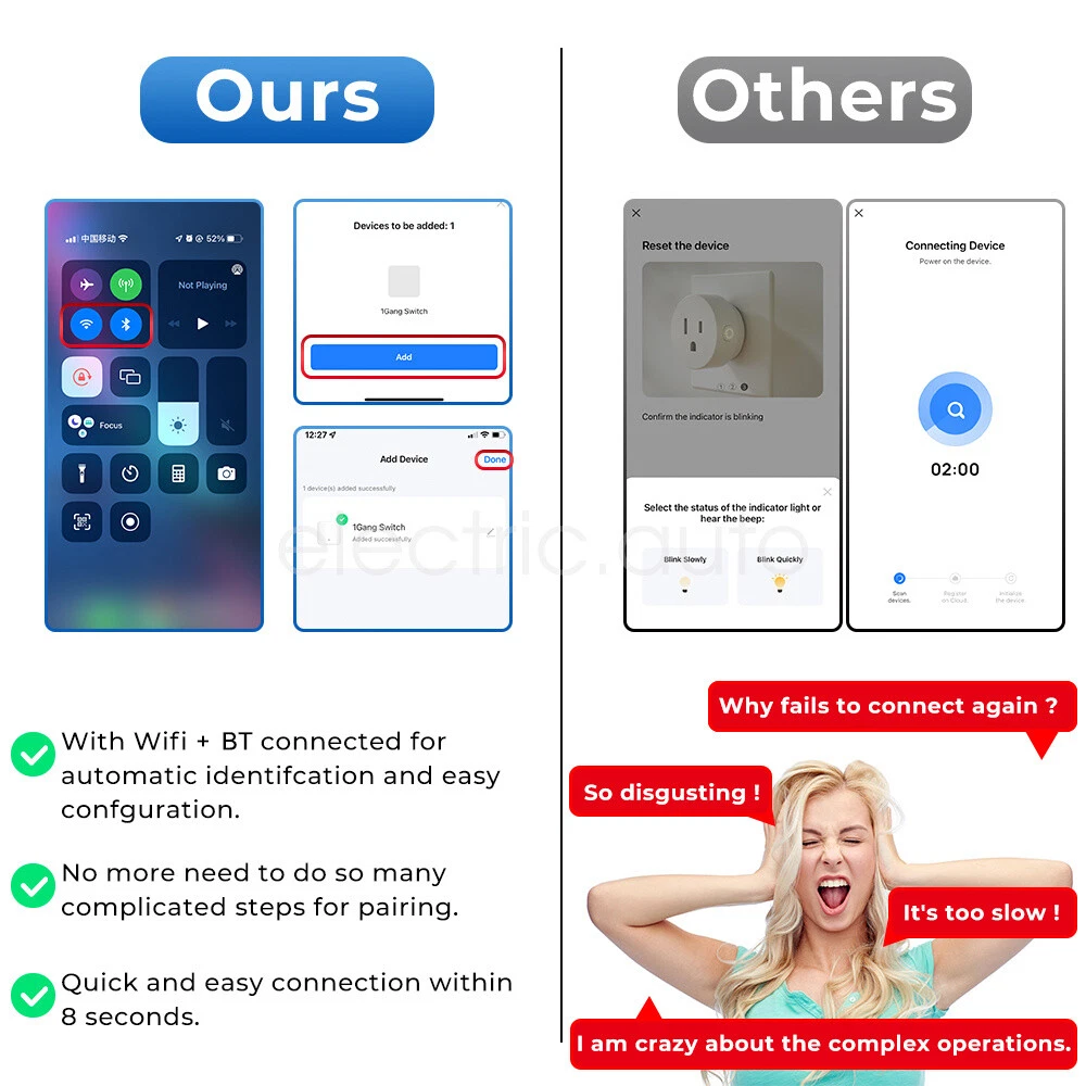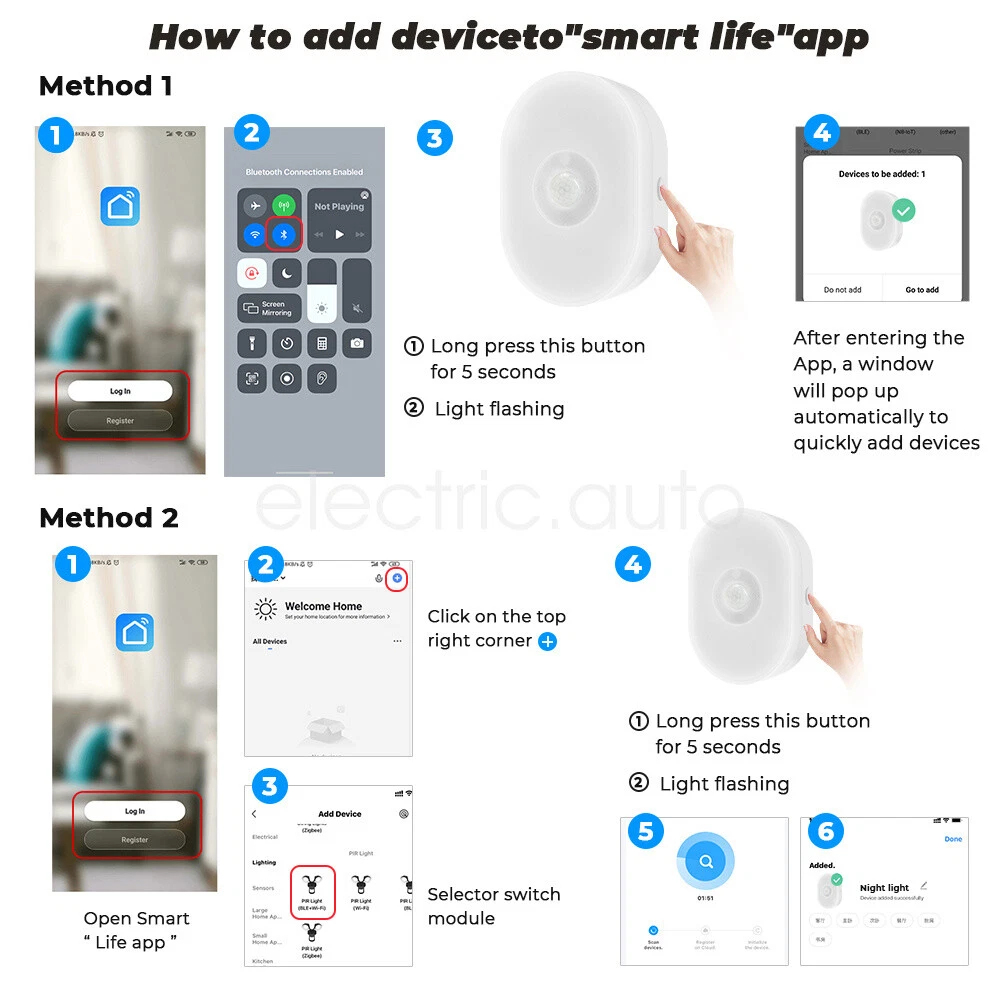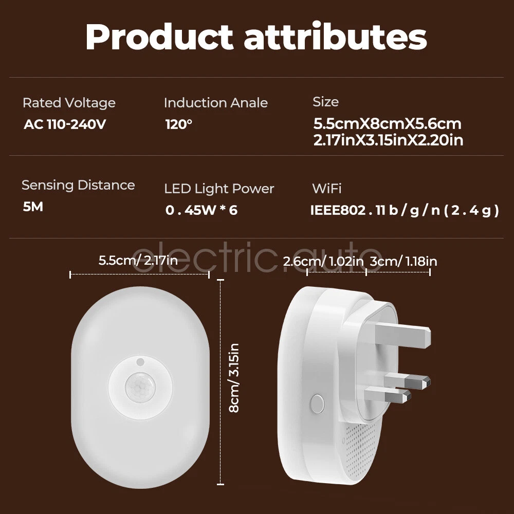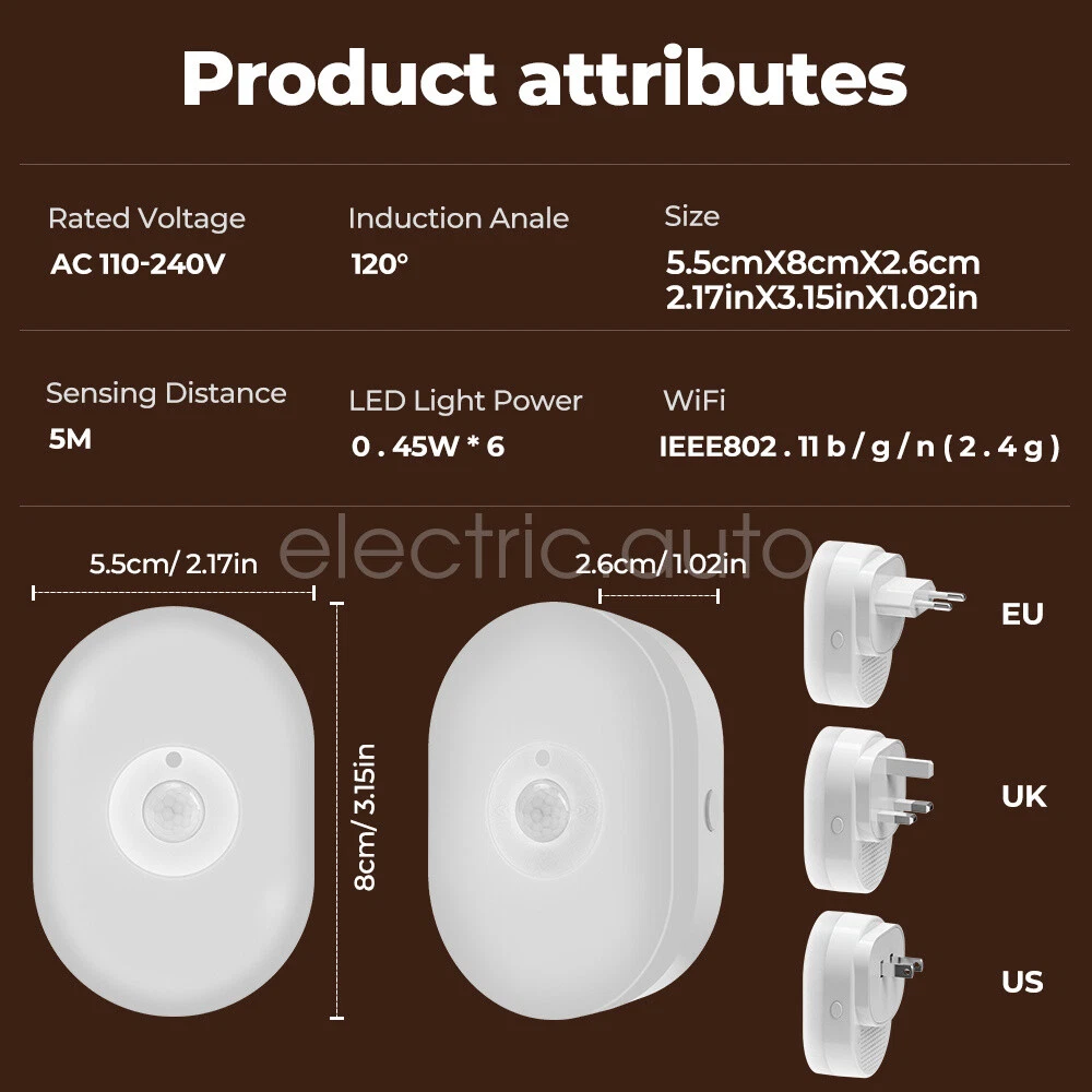 Product View Detail Features: Dual Mode Connection & Speed Improvement The sensor night light supports Wifi+Bluetooth dual-mode connection, providing a more stable network connection and increasing the speed by 2 times compared to a single Wifi connection, ensuring a fast response and seamless control experience Intelligent Sensing and Convenient Lighting Equipped with WIFI night light function and motion sensing function, it can automatically light up when people pass by, providing convenient night lighting and avoiding safety hazards when walking at night, while supporting linkage with other smart devices to enhance the smart home experience Customized Lighting Experience Users can freely set white light or warm light in the APP, and make infinite brightness adjustment to meet the lighting needs of different scenes and personal preferences The color light mode also allows you to set different colors of light to create an atmosphere for a party or date. Intelligent control and energy saving Support Amazon Alexa and Google Home Assistant voice control for brightness, color and on/off voice control With timer function and countdown function, you can preset the switching time according to your living habits, saving energy and providing convenience at the same time. Healthy Lighting and Intelligent Management Using 6 imported LED light beads, the light is soft and not harsh, protecting eye health With group function, it is convenient to control multiple night lights in a unified way. Micro-bright mode and constant light time adjustment function, which can maintain the comfort of the night environment without affecting the rest of the family History and sharing function, convenient for users to check the sensing record and share the control with family members. Offline reminder function ensures that the device is always online to safeguard the family's safety. Product Specification: Sensing angle: 120 Sensing distance: 5 meters left Voltage: 110-240V 50H Specification: Europe Working temperature: -10℃-50 Wifi Type: 2.4GH Application:Smart Lif Size: 76*36*30m Product List: 1×Induction night 1×Description Shipping Policy Payment Method Returns Policy Shipping Policy We only accept your Ebay Address ,Please Make sure it's 100% right. The items you ordered will be shipped out in 1 business day by Hong Kong Air Mail when your payment is clear. The arrival time is 5-20 business days to United States usually. We maintain high standards of excellence and strive for 100% customer satisfaction! Feedback is very important to us. We request that you contact us immediately BEFORE you give us neutralor negative feedback, so that we can satisfactorily address your concerns. Payment Method Returns Policy Copyright © 2017 DataCaciques Smart Night Light WIFI Bluetooth Remote Control Motion Sensor Home LED RGB Lamp Home Payment Shipping About us Contact us Store Categories Store Categories Consumer Electronics PC&Tablet Accessories Mobile Phone Accessories Sound&Vision Headphones Watches Camera Led Lights Others Auto Car Accessories Lights Others Motorcycle Motor Accessories Lights Others Headlamp&Torch Others Other Product View Detail Features: Dual Mode Connection & Speed Improvement The sensor night light supports Wifi+Bluetooth dual-mode connection, providing a more stable network connection and increasing the speed by 2 times compared to a single Wifi connection, ensuring a fast response and seamless control experience Intelligent Sensing and Convenient Lighting Equipped with WIFI night light function and motion sensing function, it can automatically light up when people pass by, providing convenient night lighting and avoiding safety hazards when walking at night, while supporting linkage with other smart devices to enhance the smart home experience Customized Lighting Experience Users can freely set white light or warm light in the APP, and make infinite brightness adjustment to meet the lighting needs of different scenes and personal preferences The color light mode also allows you to set different colors of light to create an atmosphere for a party or date. Intelligent control and energy saving Support Amazon Alexa and Google Home Assistant voice control for brightness, color and on/off voice control With timer function and countdown function, you can preset the switching time according to your living habits, saving energy and providing convenience at the same time. Healthy Lighting and Intelligent Management Using 6 imported LED light beads, the light is soft and not harsh, protecting eye health With group function, it is convenient to control multiple night lights in a unified way. Micro-bright mode and constant light time adjustment function, which can maintain the comfort of the night environment without affecting the rest of the family History and sharing function, convenient for users to check the sensing record and share the control with family members. Offline reminder function ensures that the device is always online to safeguard the family's safety. Product Specification: Sensing angle: 120 Sensing distance: 5 meters left Voltage: 110-240V 50H Specification: Europe Working temperature: -10℃-50 Wifi Type: 2.4GH Application:Smart Lif Size: 76*36*30m Product List: 1×Induction night 1×Description Shipping Policy Payment Method Returns Policy Shipping Policy We only accept your Ebay Address ,Please Make sure it's 100% right. The items you ordered will be shipped out in 1 business day by Hong Kong Air Mail when your payment is clear. The arrival time is 5-20 business days to United States usually. We maintain high standards of excellence and strive for 100% customer satisfaction! Feedback is very important to us. We request that you contact us immediately BEFORE you give us neutralor negative feedback, so that we can satisfactorily address your concerns. Payment Method Returns Policy Home Payment Shipping About us Contact us