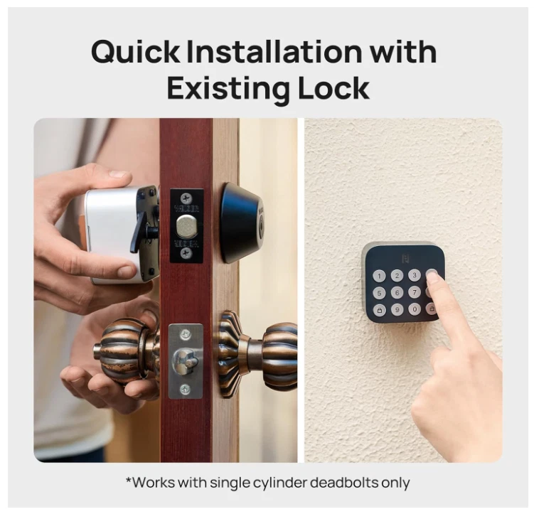 【NO-HUB Matter Ecosystems Support】Anona Holo Smart door lock is compatible with third-party ecosystems like Alexa, Apple HomeKit. Paired with these smart devices, you can easily control your door locks using voice commands, facilitating seamless connectivity within smart home. 【Upgrade Your Deadbolts with Easily Installation】Anona Holo Wi-Fi deadbolt smart locks are compatible with most single-cylinder deadbolts. It can be easily installed on the inside of the door with just a screwdriver, simply making your regular door lock smarter, safer and more convenient. 【Auto-Lock & Anomaly Detection】Never have to worry about whether you've locked your door or not. Anona Holo's built-in inertial sensor can detect closed door status and locks automatically. An alarm will be issued via buzzer or App notification when the lock is jammed or left open for a long time, providing peace of mind knowing you have always secured your home. 【Durable Battery Life】Anona Holo wifi smart deadbolt lock requires only 4 AA batteries to last 4-6 months in standard Wi-Fi mode which includes features such as remote control and real-time security alerts. You can also turn on the low power mode when travelling to extend the usage time. 【Personalized Management】No more leaving keys under the doormat. You can share full home entry with family and trusted friends, or use Anona front door smart lock create temporary or one-time passcodes for guests like dog walkers or babysitters, all from the convenience of Anona App