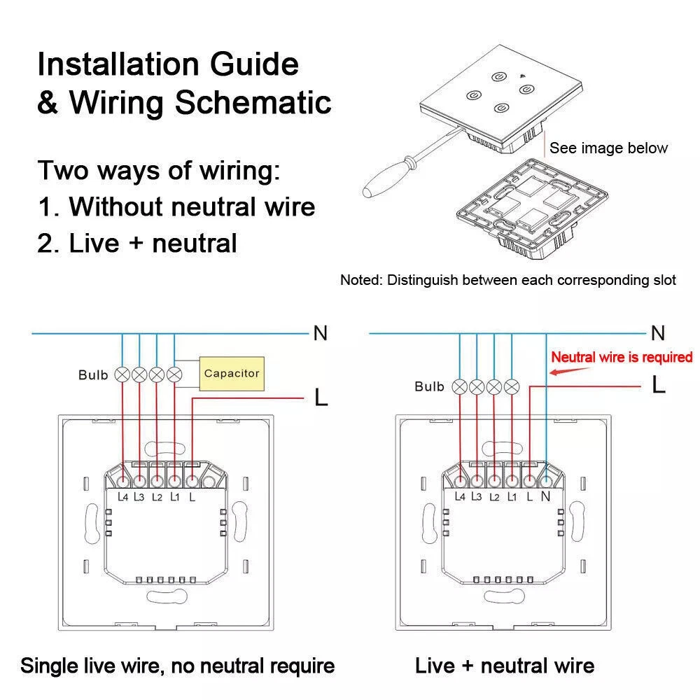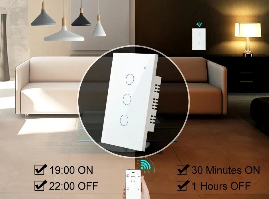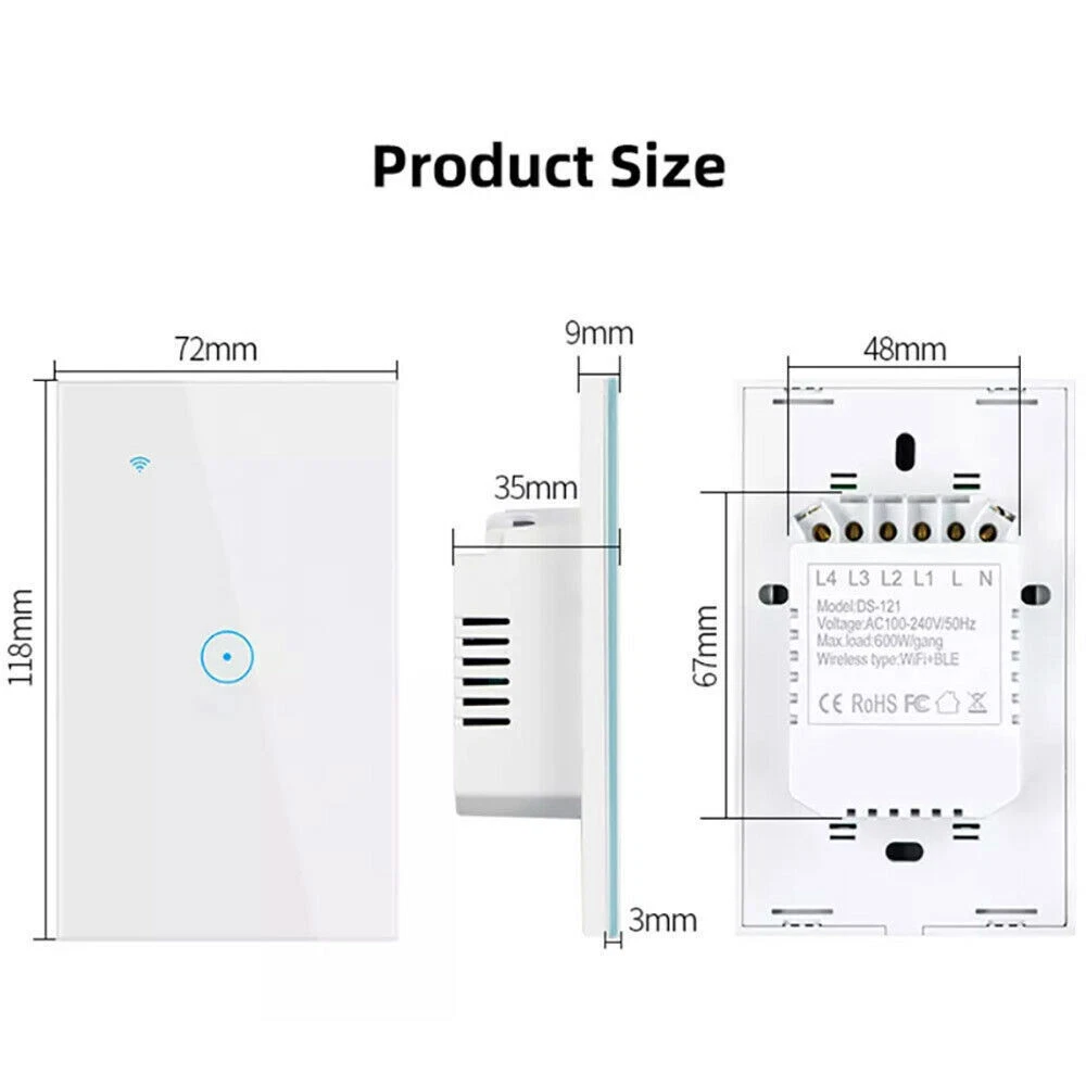 Round Panel Voltage Ammeter Amp Volt Meter Monitor Gauge Tester for Marine Boat. 16.16 USD Free shipping 6V 1400mAh Ni-Cd AA Battery Pack Rechargeable For RC Car Toys SM-2P Plug EL-2P/ 11.99 USD 4.99 USD iCam365 Security Camera 1080P WiFi Indoor Home PTZ Dome IP Auto-Tracking Monit# 47.98 USD 20.0 USD 1300mAh Batteries CR123A 16340 Rechargeable Battery / Smart Charger Lot New TOP 8.99 USD 6.99 USD 3.2" LCD Infrared Thermal Imager Sensor IR Thermometer Thermal Imaging Camera US 89.99 USD 4.99 USD 1200000lm LED Solar Street Light Security Flood Lamp Motion Sensor Outdoor Wall/ 26.99 USD 6.99 USD Magnetic Cover Slim Aramid Carbon Fiber Sunset Case For iPhone 16 15 Pro Max NEW 34.99 USD 4.99 USD Magnetic PU Leather Wallet Flip Stand Case For iPhone 12 13 14 15 16 Pro Max 18.59 USD 4.99 USD WiFi Tuya Smart Curtain Switch Roller Shutter Blind Motor Rolling Shutter Door 9.99 USD 4.99 USD Multi-Function Soldering Iron Soldering Gun 60W External Heating Soldering Gun, 104.83 USD 6.0 USD Screen Protector Clear Hinge Ring Phone Case For Samsung Galaxy Z Flip 6 7 new 13.99 USD 4.99 USD 3W RGB LED Wall Light Sconce Spiral Ceiling Lamp Fixture Bulb Home KTV Bar Decor 59.99 USD 6.0 USD 433Mhz 1CH Mini Relay Wireless Switch Power Controller RF Remote Control US 12.99 USD 4.99 USD -40~+300℃ Infrared Thermal Imager Sensor IR Thermometer Thermal Imaging Camera A 94.99 USD 4.99 USD For Echo CS 310 Chainsaw Replaces Carburetor A021001700 Smoother NEW 23.99 USD 4.99 USD 12V Super Bright Green LED Submersible Light Underwater Boat Drain Plug Light US 87.99 USD Free shipping WiFi RF433 Curtain Roller Blinds Motor Switch Tuya APP For Alexa Google Home New 13.99 USD 4.99 USD Gym Wire Rope Fitness Cable Pulley Machine System Heavy Duty Steel Pull Wirerope 23.99 USD 4.99 USD 40W E27 110V/220V Blacklight Low Energy 365NM Light Bulb Screw Ultraviolet Lampe 13.59 USD 6.99 USD For Samsung Galaxy Z Fold5 Fold7 6 Tempered Glass Camera Protector Metal Ring 9.99 USD 4.99 USD 10/20W Waterproof RGB LED Spot Light Swimming Pool Pond Fountain Lamp&Remote# 55.44 USD 6.0 USD 20W LED Underwater Spot Light For Water Aquarium Garden Pond Fish Tank+Remote 123.87 USD 10.0 USD Keyless Smart Cylinder Door Lock Finger prints Tuya APP Remote Control Lock new 122.99 USD 4.99 USD V380Pro 4K PTZ IP Camera Dual-Lens Outdoor CCTV Wifi Video Surveillance/ 309.23 USD 7.0 USD NOTE: This switch is Neutral Line required design. Before you buy, please confirm if your House has Neutral Line for this Switch. Be sure that you are using 2.4GHz WiFi when connecting with the smart bulb. And WiFi must be detectable status. Many routers have 5 GHz and 2.4 GHz network and your phone will always automatically connect to the 5 GHz network. So, you have to completely turn off your 5 GHz network by going to your router settings (enter the router IP address into your internet browser, usually something like 192.168.1.1), forcing your phone to connect to the 2.4 GHz network. Exclusive Recommendation: American Standard Wall Switch with Tempered Glass Panel, Smart Life&TUYA Dual APP Control! Now, you can take home automation to a whole new level! We proudly present the American Standard Wall Switch, combining advanced technology with exquisite design, to bring convenience, comfort, and modernization to your home. This American Standard Wall Switch features a high-quality Tempered Glass panel that seamlessly blends with your home decor. With Smart Life and TUYA dual APP control, you can remotely control the switch via WiFi anytime, anywhere, bringing convenience to your life. The touch-sensitive design makes operation easy and enjoyable. You can simply touch the switch, control the lights, adjust electronic devices, and effortlessly manage your home environment. What's even more exciting is that our American Standard Wall Switch supports scheduling. You can set timers to automatically turn on/off your home appliances according to your daily routines, making your life hassle-free. Not only that, our switch also supports voice control. It seamlessly integrates with Alexa and Google Home, allowing you to command your home devices with just a voice, enjoying the convenience of a smart home. Our American Standard Wall Switch requires a neutral wire and is compatible with an input voltage of 100-240VAC 50/60Hz, ensuring usability worldwide. With a compact size of 118*72*39mm, it features a sleek and exquisite design that perfectly matches your existing switches. Get the American Standard Wall Switch now and unlock endless possibilities for your home! Don't miss out on this opportunity. Add it to your cart and embark on your smart home journey today! Specifications: Input voltage: AC 100-240V AC 50/60Hz Networking: WIFI 2.4G Hz 802.11b/g/n Gangs: 1 / 2/ 3 /4 Optional Rated current: 10A Power rating: 600W/Gangs Size: 118*72*39mm Life: 100000 times Housing Color: White / Black / Gold / Grey Optional Operating Temperature: -20℃~+50℃ Plastic material: Tempered Glass / ABS / PC Fire-protection rating: 94-V0 WIFI remote control: turn the light on/off from anywhere and anytime App Support: Free iOS and Android Phone Apps (Smart Life/ Tuya) Voice Control: Alexa & Echo dot, Google Home, IFTTT, TmallGenie, Roqi Independent control: control each way separately Synchronization status: real-time device status provided on the APP Timing function: Set the reservation/countdown timer to turn on/off at the specified time Direct replacement of the traditional switch, the 120mm box hole is common. Package Included: 1 x Smart Switch 1 x Manual 1 x Screw Pack
