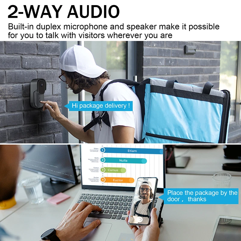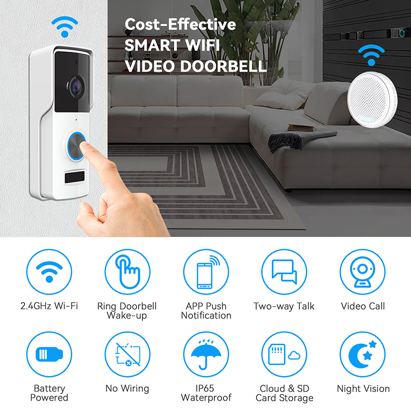 Smart WiFi Video Doorbell with Wireless Security Intercom and Chime