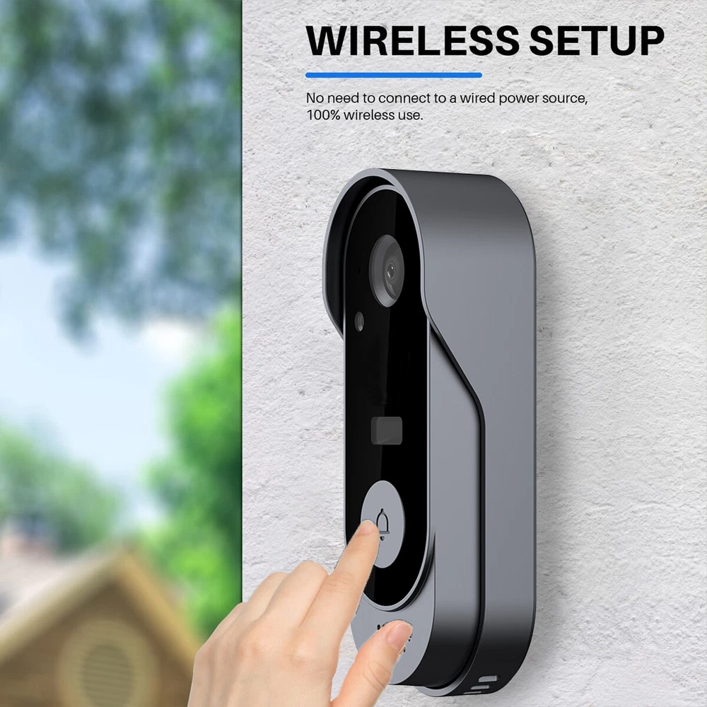 Description: 1. Material: High-quality ABS material, light and durable, long service life 2. Lens: This video doorbell has an ultra-high-definition camera lens and a 125° wide-angle lens to protect your home security around the clock. 3. Video call: Built-in two-way microphone, when someone rings the doorbell, a push notification will be sent to the mobile phone, and the owner can enter the mobile phone call interface. You can check and talk to the visitor anytime and anywhere. 4. Volume adjustment: This doorbell has a strong and stable signal, easy pairing, and a transmission distance of up to 50 meters. The volume and ringtone can be adjusted according to your preferences. 5. Infrared night vision: Built-in high-quality IR LED lamp beads and light sensor, the picture is clear at night. When the ambient light drops to 2 Lux, it can also automatically switch from day mode to night mode. 6. Battery use: The doorbell has a built-in 1000 mAh rechargeable lithium battery. It can be used continuously for 2 to 4 months after being fully charged. There is no need for frequent charging. The bell is powered by USB and has a long battery life. 7. Storage method: This doorbell supports TF card + cloud storage. When a visitor presses the doorbell, it can capture the visitor's picture and save the record to the APP, so that the mobile APP can view past pictures at any time, which is safer and more secure. 8. Network connection: Supports 2.4GHz network connection and "Tuya" APP connection. The mobile phone can quickly wake up the device within 1 second remotely, making the work more stable. 9. Portable installation: 2 installation methods, can be pasted with adhesive or drilled, convenient and worry-free Specification: Name: Smart Wireless Video Doorbell Security Camera Infrared Intercom Doorbell Waterproof Doorbell Colour: Black Working temperature: -10°-60° Viewing angle: 125° Main control processor: Broadcom/BK7252 Power input: DC5V/2A Power supply mode: 100-240v, 50-60Hz Battery used: Built-in rechargeable lithium battery Battery capacity: 1000 mAh Working time: 2-4 months Night vision type: infrared night vision Storage function: TF card (maximum support 64GB -not included) + cloud storage (free forever) WiFi connection: only supports WIFI IEEE802 11b/g/n (2.4GHz), RF 433mhz Voice system: two-way intercom/mobile phone remote prompt viewing System support: Android 4.3 or iOS 9.0 or above Use APP: Tuya APP Music type: 20 pieces Recording distance: about 5m Waterproof grade: IP65 Radiator size: 13.5*3.5*2cm Receiver size: 6*3.8*2cm Gross weight of a set: 210g Package list: 1 * Receiver 1 * Transmitter 1 * Data cable 1 * Installation accessories 1 * Instruction manual