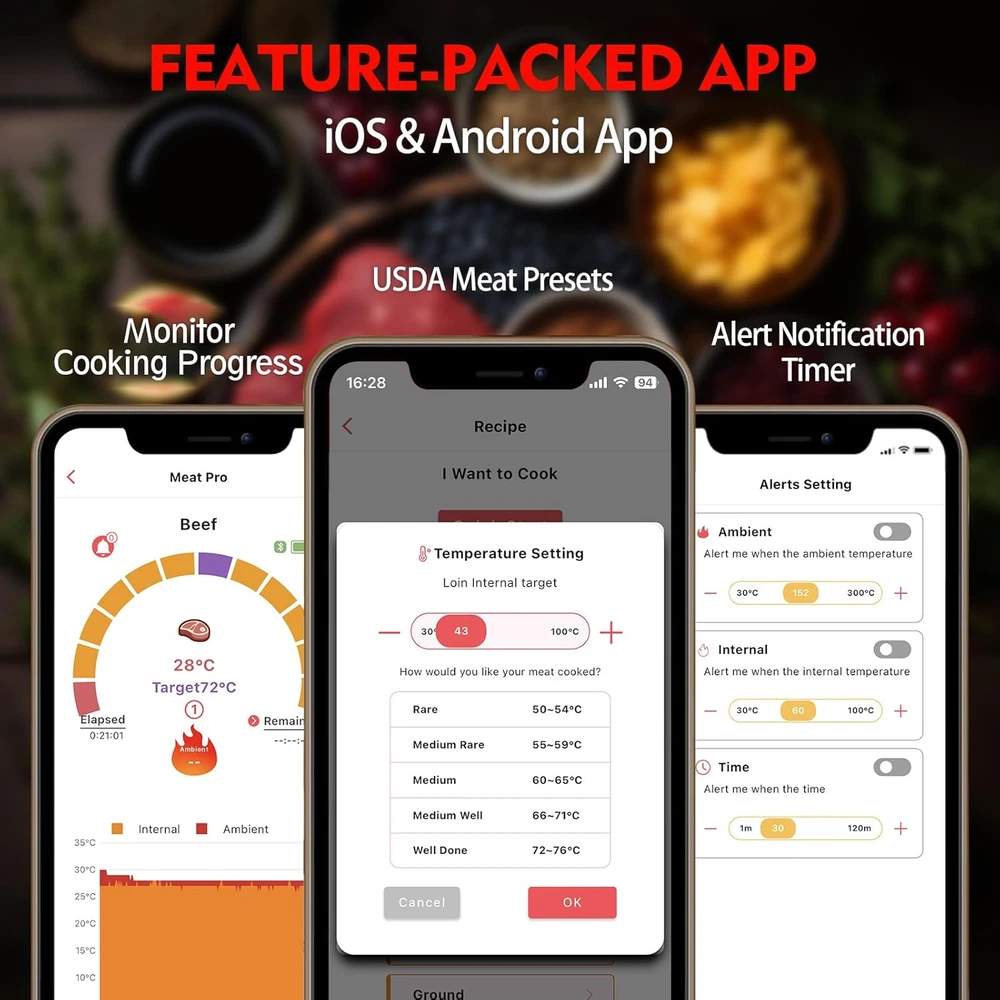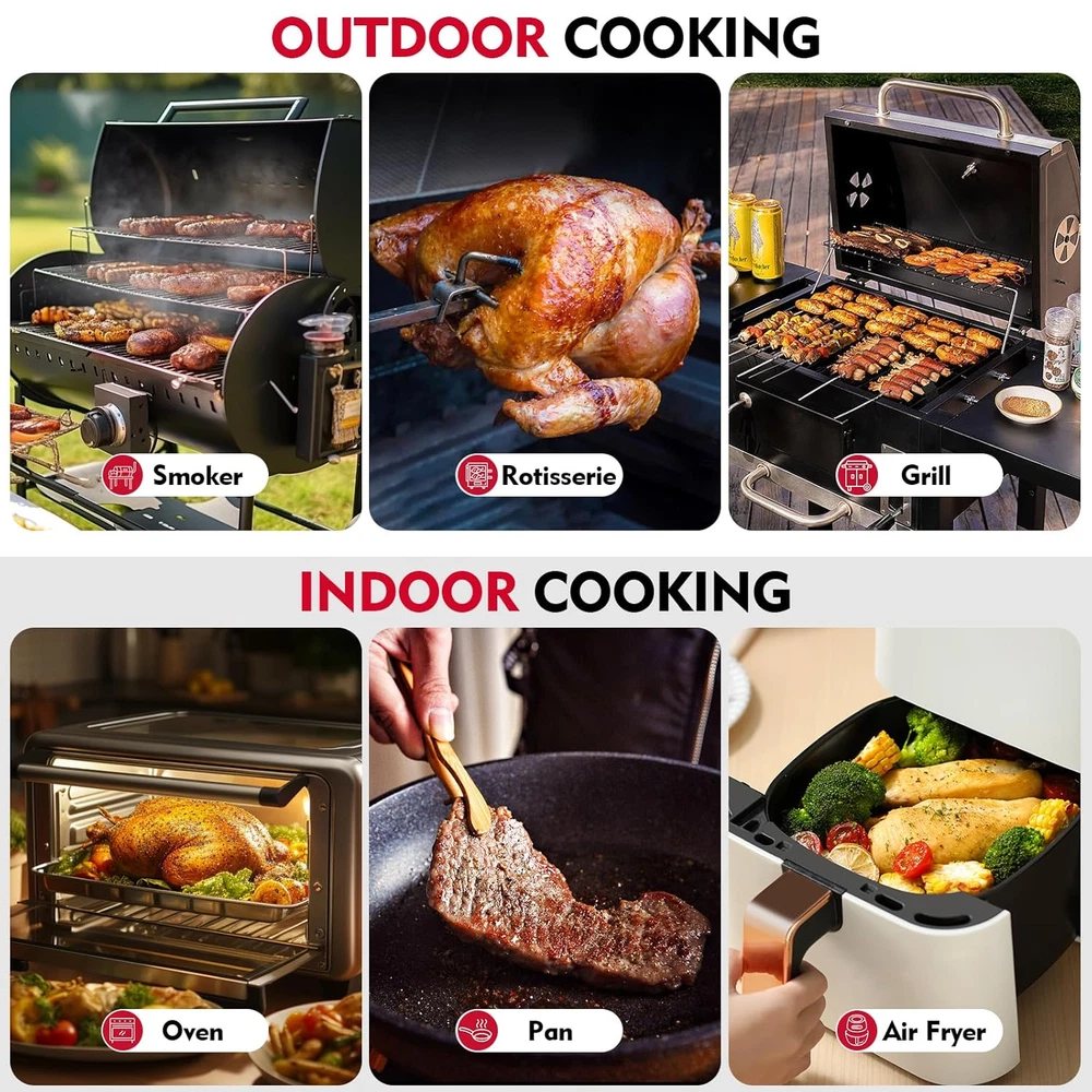 Store New Arrivals Add to Favorite View Feedback Contact Smart Wireless Meat Thermometer, Remote Range Dual Bluetooth Digital Food Thermometer for Oven, Indoor Outdoor Cooking, Grill BBQ, Compatible with Ios & Android Description Unit Count 1.0 Count Display Type Digital Color Black Country of Origin China Outer Material Stainless Steel Connectivity Technology Bluetooth Age Range (Description) Adult Special Feature Timer, Alarm Package Dimensions 6.61 x 1.61 x 1.38 inches; 3.21 ounces Product Care Instructions Oven Safe Included Components Thermometer, Booster đă2 Sensors, 1 ProbeăThe dual temperature sensors on our wireless smart cooking thermometer enable you to monitor both internal meat temperature (up to 185°F) and ambient/outside temperature (up to 527°F). This means you can achieve the perfect doneness of your meat while still making sure your grill or oven is running at the correct temperature. đăDual Bluetooth LinkăThe Bluetooth connection between the meat thermometer probe and the booster, the booster and the mobile phone, the connection is more stable. Our bluetooth meat thermometer for grilling offers an impressive range of 165 ft, allowing you to wirelessly track cooking temperatures without the hassle of holding wires. đăIdeal for Indoor and Outdoor Cooking LoversăIt is great for electric barbecues, smokers, ovens, grills, frying pans, or sous vide cooking. Plus, you can easily monitor your cooking progress with the free APP, available for iOS (version 12.2.0 and higher) and Android (version 9.0 and higher) smartphones. đăUse our Guided Cooking Systemă The Meat Pro APP will guide you through every stage of the cooking process, ensuring perfect and consistent results every time. And if that's not enough, you can even set custom alerts and notifications based on temperature or time of day to keep you on track. And will launch a variety of recipes for you to choose. đăSmart Meat ThermometerăCooking continuously for 24 hours per charge. LED indicator light: Displays the status of the charger battery and the connection status of the probe. Store and charge the probe. Portable and recharges the probe up to 100 times on 1 AAA battery. Product Description 1 100% WIRE FREE 2 COOK INSIDE & OUTDOORS 3 RESTAURANT QUALITY Smart APP Controlled Bluetooth Meat Thermometers 2 Sensors, 1 Probe This means you can achieve perfect doneness in your meat while ensuring your grill or oven is operating at the correct temperature. 1 WHOLE SALMON 2 ROASTED CHICKEN 3 MUTTON CHOP 4 WHOLE TROUT ABOUT US We offer the best prices around on high quality products. Our E-store includes media such as books, movies, music and games while offering electronics, toys, sporting apparel, clothing, tools, general home, garden items and more. SHIPPING We are always working hard to ensure your package arrives as soon as possible. Please understand that some factors like weather, high postal traffic, and the performance of shipping companies are outside of our control. We offer free shipping to the lower 48 states and ship within 2 business days of payment, usually sooner. We do not accept P.O. Boxes. Please provide a physical address. For shipping outside of the continental USA, we only use eBay's Global Shipping Program.The item is shipped to KY and then sent to the rest of the world. International customers are responsible for all duties and taxes. Continue to check out in order to calculate costs for shipping the item to your country. Messages regarding eBay's Global Shipping Program MUST be directed at eBay EXCLUSIVELY. RETURNS We offer a 30-Day Return Policy on items which you are not completely satisfied with. You have the option for a full-refund or an exchange of the item. No returns are available on items shipped outside of the USA. PAYMENT We accept PayPal. CONTACT US This page content is yet to come Please ad us to your favorite seller and visit again later Thank You CUSTOMER SATISFACTION We try our very best to make sure every customer is completely satisfied. If there's a problem, message us! We're happy to help. WE ACCEPT Copyright © 2021 AutoDS. | All Rights Reserved
