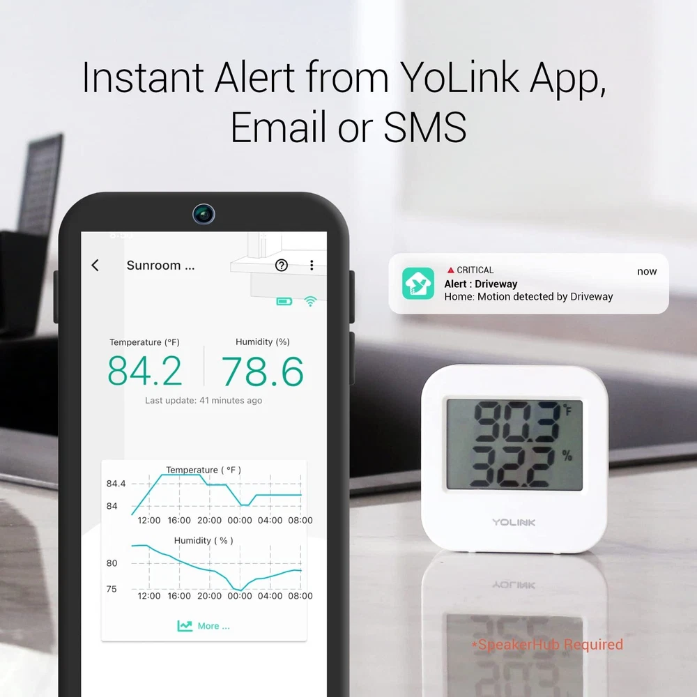 LORA > WIFI! devices do not use your WiFi, they do not crowd or bog down your WiFi network, but instead they use a unique LoRa-based extreme long-range and low-power wireless protocol unique to most of the smart home industry. Put smart devices where you never could before: outdoors*, several floors away, in fridges, safes, and locations well beyond normal WiFi range! *Consider of our weatherproof sensors, designed for outdoor use MONITOR & MANAGE your temperature and humidity concerns, whether it's a fridge or freezer, a barn* or bedroom, a chicken coop or a dog kennel, a plant nursery or your 's nursery - anywhere! *Consider of our weatherproof sensors, designed for outdoor use ECONOMICAL SMART FRIDGE! Save thousands when you make ANY fridge smart (or smarter) with smart sensors. Start with temperature sensors, then add door/lid sensors, leak sensors and a Power Fail Alarm. IFTTT & Alexa Integration: trigger IFTTT applets based on high or low temperature set points reached (when device alerts). Voice query Alexa for the temperature (only; humidity not supported at this time). Triggering Alexa routines is not supported at this time. KNOW NOW! You have many options for being notified of device activity! Receive a text, receive an , receive a push notification (including Apple "Critical Alert" severe weather/Amber alert type notifications that will activate your even if in silent mode. Android phones offer similar functionality, depending on manufacturer). SMS messages are limited to the total of 5 times each device plus 5. A hub and sensor provides you with 15 free SMS per month. HUB REQUIRED for full functionality, including for the app to work, but your hub is with a growing family of smart products for home and business! devices do not use your WiFi, they do not crowd or bog down your WiFi network, but instead they use a unique LoRa-based extreme long-range and low-power wireless protocol unique to most of the smart home industry. Search for B09FSS95G9 for a SpeakerHub (our audio, talking hub) or B07TQLKQLJ for the original Hub. BATTERIES INCLUDED! AAA batteries, good for 2+ years, are included!