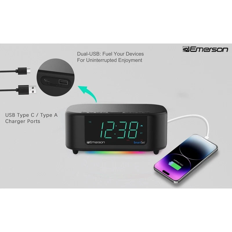 You may also like Loud Alarm Clock Heavy Sleepers Silent Non-Ticking Easy to Set Gift Ideal New 15.05 USD 15.84 USD Free shipping 5% off Battery Operated LCD Bedside Alarm Clock Compact Travel Size W/ Snooze Backlight 17.56 USD 18.48 USD Free shipping 5% off Rubber Smartlight Digital LCD Alarm Clock Battery Operated W/ Snooze Nightlight 19.0 USD 20.0 USD Free shipping 5% off Battery Powered Mini Alarm Clock W/ Temperature Humidity Comfort Meter Display 18.4 USD 19.37 USD Free shipping 5% off Triple Alarm Clock Big Numbers Display Dimmable Digital Nightstand Clock New 14.75 USD 15.53 USD Free shipping 5% off Kyoda Beep Alarm Clock Analog Quartz Light Snooze Luminous Quiet Sweep Design US 31.79 USD 33.46 USD Free shipping 5% off Equity 3.75" Metal Quartz Analog Alarm Clock Snooze Backlight Silent hands New 22.95 USD 24.16 USD Free shipping 5% off Weather Band Alarm Clock Radio Dual Alarm Wireless Charging USB Temp Sensor 34.95 USD 36.79 USD Free shipping 5% off Digital Alarm Clock Triple Alarm Snooze Function Temperature Gauge LED Display 14.75 USD 15.53 USD Free shipping 5% off Digital AM FM Clock Radio Alarm W/ Aux Cord Sleep Function Multiple Alarms New 28.43 USD 29.93 USD Free shipping 5% off Digital Alarm Clock Snooze Feature Calendar Temperature Display Battery Operated 39.58 USD 41.66 USD Free shipping 5% off Analog Quartz Alarm Clock W/ Snooze Quiet Sweep LumiBrite Hands Desk Clock New 26.16 USD 27.54 USD Free shipping 5% off Enjoy High Quality Sound with Output Power of 3W x 2 @10% THD and Passive Radiator. Create a Relaxing Ambience with Dimmable 7-Color LED Night Mode and 7-Color LED Lights that Pulse to Music. Bluetooth Speaker and Type C USB Port to charge your devices. Stay on Schedule with our Patented SmartSet Automatic Time Setting System and Dual Alarm Feature with your Choice of 3 Alarm Modes - Every Day, Weekdays Only, or Weekends Only. Customize Your Wake-Up Experience with Programmable Sleep-to-Music Timer, Snooze/Repeat Alarm, and Crescendo Wake-Up Control. The CKS8888 SmartSet Dual Alarm AM/FM Clock Radio has everything you need to start your morning right and help you sleep tight! Bluetooth Speaker with LED Lights that Pulse to Music Output Power: 3W x 2 @10% THD with a Passive Radiator Dimmable 7-Color Mode Night LED Type C USB Port for Mobile Phone Charging (2. 1A 5V) Bluetooth V5. 4 Technology for Easy Pairing and High Speed Data Transfer up to 10M Range Patented SmartSet® Automatic Time Setting System Automatically Sets Itself to the Correct Year, Month, Date, Day and Time as Soon as You Plug it in and After Every Power Interruption, Auto DST Dual Alarm plus Week Indication & Choice of 3 Alarm Modes: Every Day, Weekdays Only, or Weekends Only Digital Tuning PLL AM/FM Radio 20 Station Memories Easy-to-Read, 1. 2” Cyan LED Clock Display 4-Level Dimmer Control Button Cell Battery (Included) - Maintains Time & Alarm Settings After Power Interruption Displays Month/Date at the Touch of a Button Wake to Radio or Buzzer Alarm with Volume Control Programmable Sleep-to Music Timer Snooze/Repeat Alarm and Crescendo Wake-up Control You may also like Freeze-Dried Beef Stroganoff Pouch 8 Pack Camping Food Quick Prep Emergency Meal 83.44 USD 87.83 USD Free shipping 5% off Mirror Medicine Cabinet W/ Adjustable Shelves Bathroom Storage Organizer Durable 92.68 USD 97.56 USD Free shipping 5% off Memory Foam Chair Cushion 2 Pack Comfort Soft Cover Plush Seat Pad Durable Ties 32.94 USD 34.67 USD Free shipping 5% off Indoor Tufted Chair Pad Cushion Reversible Soft Touch 100% Recycled Fill New 26.64 USD 28.04 USD Free shipping 5% off Round Wall Mirror 32 Inch Black Finish Decorative Functional Home Accent Mirror 73.04 USD 76.88 USD Free shipping 5% off Baja Console Table Space-Saving Two Shelf Indoor Furniture Easy Assembly New 103.5 USD 108.95 USD Free shipping 5% off Elite ASE-30 Garbage Disposal 1/3 HP Continuous Feed High Torque Anti-Microbial 80.65 USD 84.89 USD Free shipping 5% off Lightweight Aluminum Rollator Folding Rolling Walker 6inch Wheels Padded Seat US 83.02 USD 87.39 USD Free shipping 5% off Foldable 3 Panel Black Metal Fireplace Screen W/ Mesh Netting Iron Scrollwork US 106.57 USD 112.18 USD Free shipping 5% off Teak Hardwood Outdoor Armchair Water Resistant Patio Garden Furniture Seating US 141.22 USD 148.65 USD Free shipping 5% off 4 Door Kitchen Pantry Storage Cabinet W/ 4 Shelves Adjustable Compartment Rack 116.29 USD 122.41 USD Free shipping 5% off Outdoor High Back Chair Cushion Reversible Soft Polyester Water Resistant New 80.73 USD 84.98 USD Free shipping 5% off