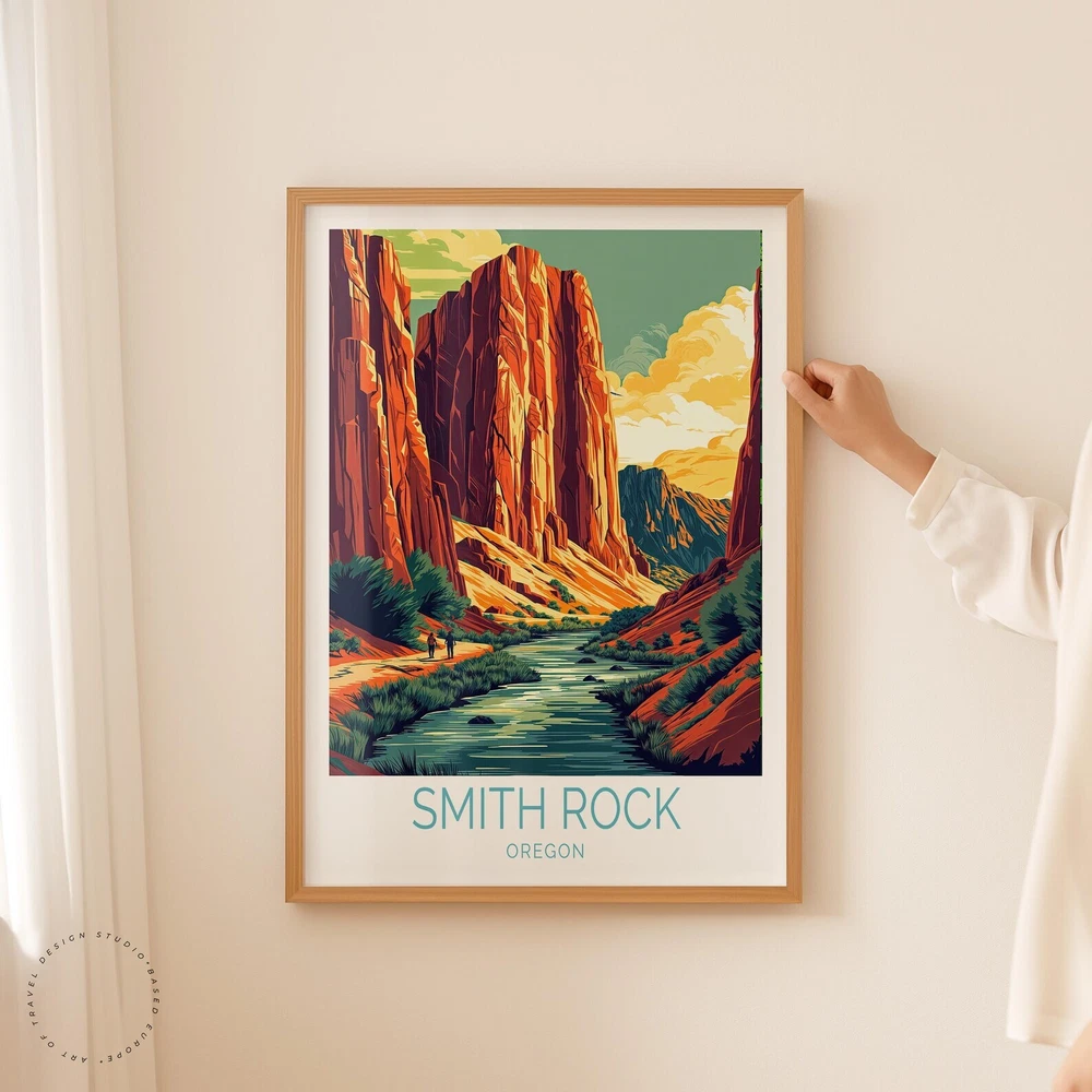 Smith Rock Oregon Travel Poster Oregon Smith Rock Print Smith Rock Wall Art Birthday Present Home Decor Wedding Gifts Material: Premium luster photo paper Print type: Inkjet printing One side printed + The finish provides the highest possible resolution and color saturation + Lasts up to 200 years in color and 400 years in black-and-white + Printed on high-quality resin-coated photo base paper medium + Posters can be hung with double-sided tape, tacks, or framed + Hand washing with a gentle cry cloth is recommended for extended durability I will hand select the best choice of paper for your chosen design to ensure top quality results for a beautiful, bright and luxurious print. All prints are sealed in cellophane slips for protection during transportation, and are shipped in a protective cardboard envelope.