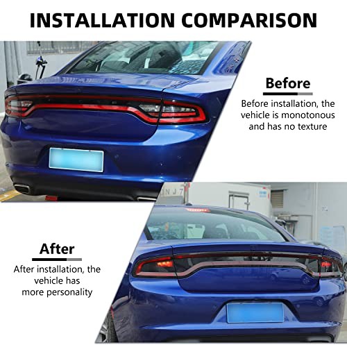 Return Policy Fast Delivery Trusted seller for Charger Tail Light Lamp Covers, Smoked Rear Light Guards Compatible with 2015-2024 Dodge Charger Exterior Accessories, ABS Smoke Black Product Description FITMENT--The tail light tint compatible with Dodge Charger 2015 2016 2017 2018 2019 2020 2021 2022 2023 2024 up. FASHION DECORATION--Update the drab tail lamp to add stylish style and protect your taillight from scratching. With trunk button hole, does not affect the switch. HIGH-QUALITY MATERIALS--Made of high quality ABS plastic material, durable and not easy to break. Permanent protection for your rear light. EASY TO INSTALL--Tear off the double-sided tape on the back of the tail light decal and paste it to the corresponding position. SATISFACTION SERVICE--If you have any dissatisfaction or questions with tail light tint spray, please feel free to contact us, we will provide you with a 100% satisfactory solution. Shipping Returns Payment Shipping Shipping is FREE to all addresses other than APO/PO boxes in the lower 48 states. All our stock ships from US-based warehouses. Shipped via USPS or UPS (depending on location and package weight) Unless stated otherwise, all orders will ship within 24-72 hours of your payment being processed. Check our feedback to see the great reviews of FAST shipping we offer. Returns Seller does not accept returns Payment We currently accept payment via eBay managed payments only. Once payment is cleared, we will dispatch your shipment within 1-3 business days. Please refer to the "Shipping" tab for more information regarding shipping speed to your destination.