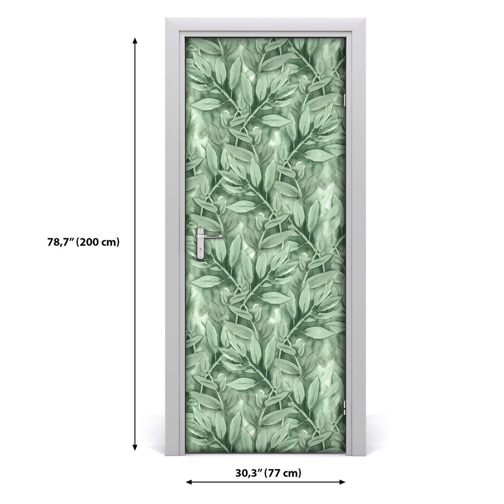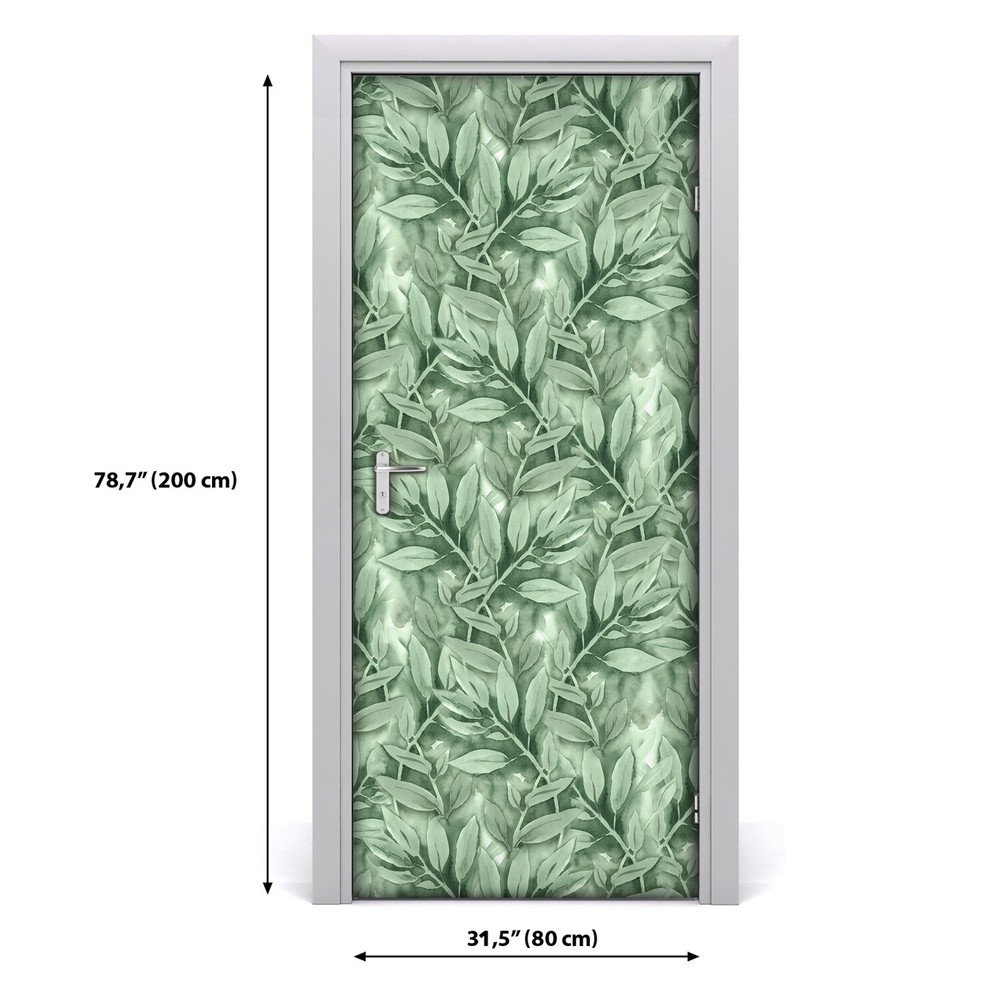Fresh Green Plants Adhesive Door sticker Watercolour feminine abstract painting