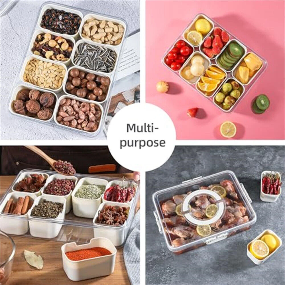 Product Description High quality materials: The handheld candy box is made of high-quality food grade plastic, which is healthy, environmentally friendly, safe and practical. Conveniently designed divided serving tray with lid and handle for easy transportation and storage - perfect for serving snacks and organizing your favorite treats. Portable: A portable handle is on the lid of outer transparent container. Snap buckle design can make the lid tightly connect with container thus you can use the handle with confidence to take the snackle box to any where. Versatile: The snack box has 8 compartments that you can store foods one by one to avoid mixture and can help you kitchen or coutertop clean and tidy. Multi functional and convenient to use: The separated design allows for better classification of snacks and dried fruits without mixing flavors. You can bring this separate plastic container, which contains candies, nuts, snacks, cooked food, cookies, cheese, appetizers, fruits, vegetables, meat, and other things. Packaging list: Spice storage box * 1 Payment Shipping Return [1] We ONLY accept Ebay payment. [2] The payment must be received within 5-days after bid. Or Unpaid items will be reported to Ebay Resolution Center, if you can not buy it for some reason, please contact me to cancel the order. [3] Please pay attention that import duties, taxes and charges are not included in the item price or shipping charges. [1] 2-3 workdays for preparing items after payment clear. [2] Only ship the package to the Ebay address , make sure shipping address is the same as the one you want. [3] After package sent, it will take 3-7 workdays for delivery via DHL/FEDEX/UPS, 7-15 business days via Ebay SpeedPAK , 15-60 workdays via China post mail. [4] If your place is a remote area included in DHL website or UPS Extended Area Surcharge (EAS) Definitions you need pay additional 36USD as Remote surcharge, Please attention the price on ebay is including the shipping fee,not remote area fee,thanks for your understanding! [5] Please leave your phone number, it is very important for deliery! [1] For any exchange or refund, we need the original receipt or a record of the purchase in our system, and the product must be in its original condition, including the box, packaging, and all the accessories. [2] Buyers should pay for the returning shipping fee. [3] If you have any questions or problems for the goods, contact with us first before you take other actions, We will really appreciate of your kindness to give us the opportunity to resolve a problem. Payment [1] We ONLY accept Ebay payment. [2] The payment must be received within 5-days after bid. Or Unpaid items will be reported to Ebay Resolution Center, if you can not buy it for some reason, please contact me to cancel the order. [3] Please pay attention that import duties, taxes and charges are not included in the item price or shipping charges. Shipping [1] 2-3 workdays for preparing items after payment clear. [2] Only ship the package to the Ebay address , make sure shipping address is the same as the one you want. [3] After package sent, it will take 3-7 workdays for delivery via DHL/FEDEX/UPS, 7-15 business days via Ebay SpeedPAK , 15-60 workdays via China post mail. [4] If your place is a remote area included in DHL website or UPS Extended Area Surcharge (EAS) Definitions you need pay additional 36USD as Remote surcharge, Please attention the price on ebay is including the shipping fee,not remote area fee,thanks for your understanding! [5] Please leave your phone number, it is very important for deliery! Return [1] For any exchange or refund, we need the original receipt or a record of the purchase in our system, and the product must be in its original condition, including the box, packaging, and all the accessories. [2] Buyers should pay for the returning shipping fee. [3] If you have any questions or problems for the goods, contact with us first before you take other actions, We will really appreciate of your kindness to give us the opportunity to resolve a problem. powered by