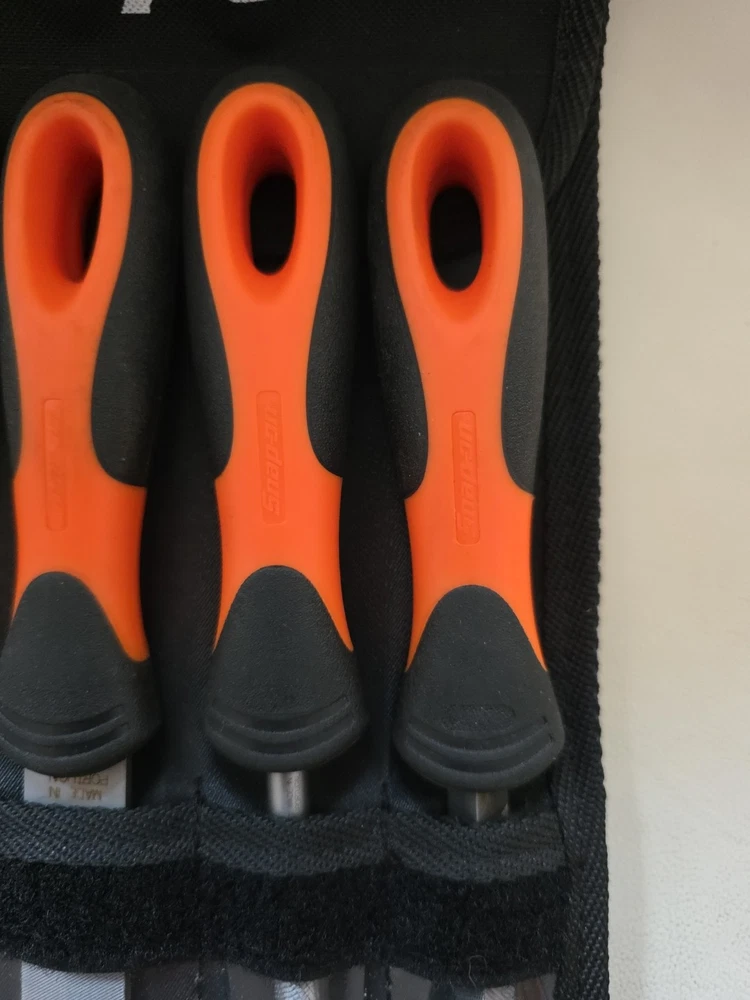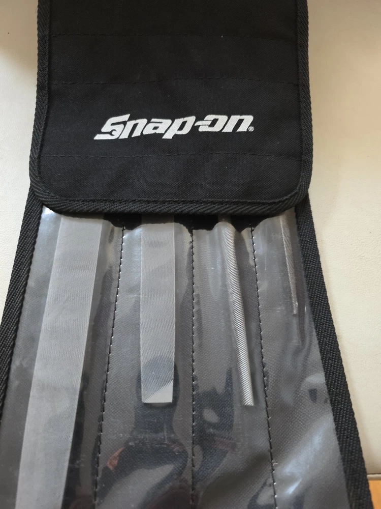 The Snap On Tools 4-pc Orange Soft Grip Handle Mixed File Set SGFMX104 includes a collection of files with a soft grip handle for comfortable and secure handling. The set consists of four different files, providing versatility for various tasks. The brand, Snap On, is known for producing high-quality tools, ensuring durability and reliability. A suitable choice for individuals seeking precision and efficiency in their garage or workshop projects.