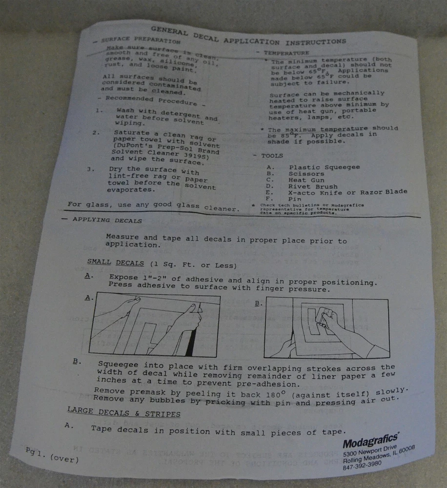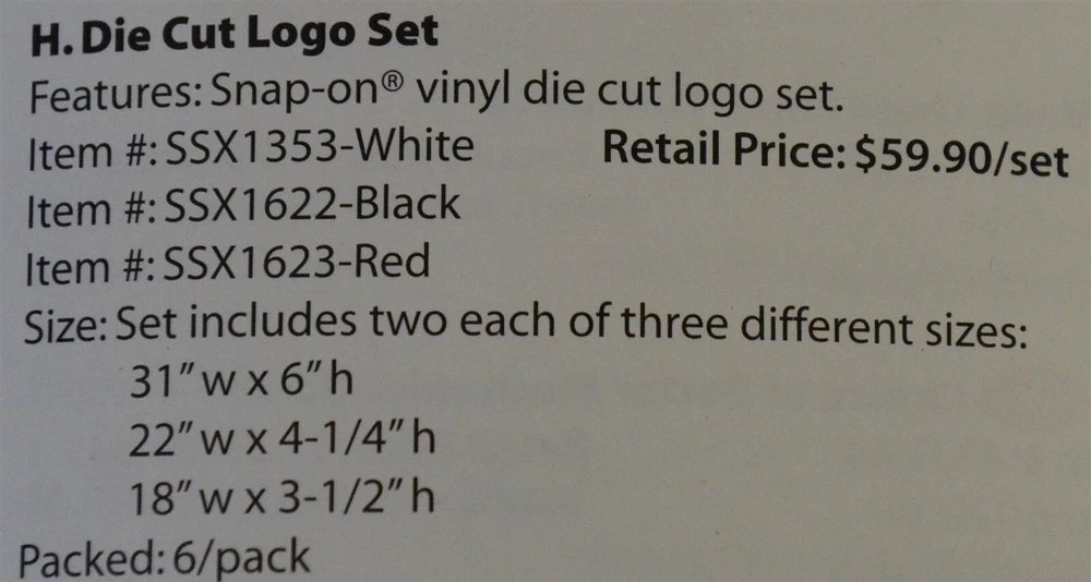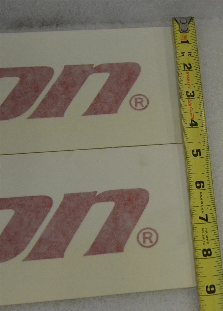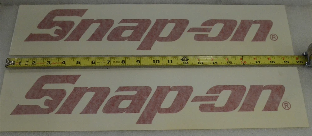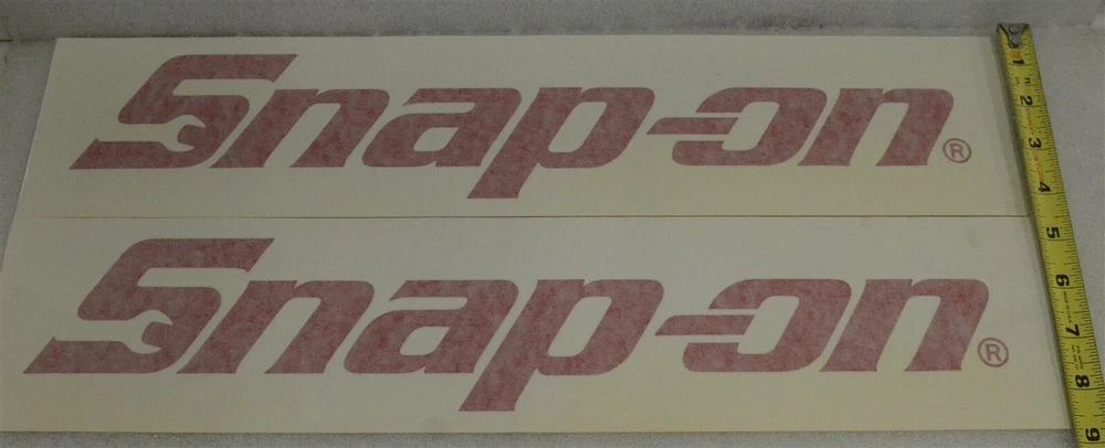 This is a New Old Stock Snap-on® Tools 1990's RED Old Die Cut Logo Truck or Tool Box Decals Set of 6 in 3 different sizes (2) 18" x 3 1/2", (2) 22" x 4 1/4" & (2) 31" x 6". These were designed to be applied to the outside of the dealers truck, on a tool box or Race Cars. The last picture shows one installed on my overhead locker above my tool box. It will be rolled and mailed in a strong cardboard tube. Decals come in 1 piece: 1. Top layer is a transparent transfer tape. (Holds your decal or sticker together until it is applied) 2. Middle layer is your actual decal or sticker (It is sandwiched between the Application Tape and the Wax Backing) 3. Bottom layer is the paper backing. (protects the adhesive until the decal is ready to be applied) Application Tips: 1. Do not apply on extreme cold or hot Surfaces. Ideal temperature must be between 60°F & 90°F (room temperature). 2. Do not touch the adhesive backing, oils from your skin will prevent sticking. 3. Before applying decal make sure there is no wax, oily products or dust on the surface of vehicle. Application Instructions: 1. Rub the sticker to be sure the transfer tape is properly adhered to the sticker. 2. Clean and dry the desired area. 3. Remove the paper backing slowly making sure the sticker stays adhered to the transparent transfer tape. 4. Spray the area with 2% soap and 98% water. 5. Carefully position the sticker to the desired area. The water will allow the vinyl to be re-positioned. 6. Use a squeegee/credit card and rub the sticker from one side to the other, eliminating any air bubbles and water that is trapped underneath. Continue until the adhesive adheres to the vehicles surface. 7. Slowly remove the transfer tape, making sure no part of the sticker remains on the transfer tape. 8. You may use blow dryer to soften the adhesive some more and rub the sticker so it will adhere better. 9. Check for air bubbles. In most cases air bubbles can be worked to the edge of the sticker, but if not, a pin hole will allow the air out and become virtually invisible. 10. Wrap the vinyl around the edges and use a blow dryer to dry off the remaining excess water. Yes I will combine shipping on multiple purchases whenever it is possible check out my other items ! Be sure to add me to your favorites list ! Thanks for Looking and Good Luck Bidding Powered by SixBit's eCommerce Solution