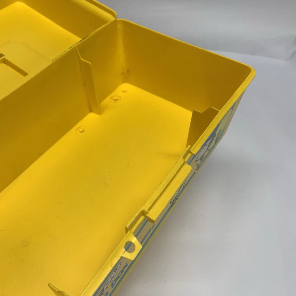 Snoopy Catch'em Box Zebco Fishing Tackle Box 80s 1980s Vintage No Tray No tray and has some ink on the inside and sticker residue on the outside. We are passing our shipping discount on to you. Thank you for Looking! We hope you will check out our other items as you never know what we may find. Our shipping might be a little more than others at times but that is because we pack things to withstand the worst that can happen to them. When you get your order in one piece and see the way it is packaged, we hope you will see why our cost to ship is higher at times than others. Materials to protect your order add weight and size to the package. We are continually looking for ways to reduce costs for you, but we will not reduce what we feel is the appropriate protection for your order. You will never get an order from us that is just tossed in a box free to move inside the box. Every order is packaged with its probably getting thrown or dropped at some point on its way to you in mind. All Clothing Items are cleaned before listing. Always open to reasonable offers.
