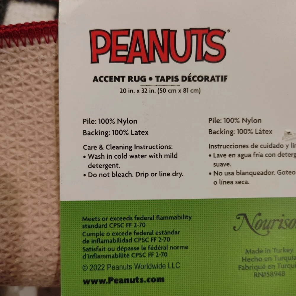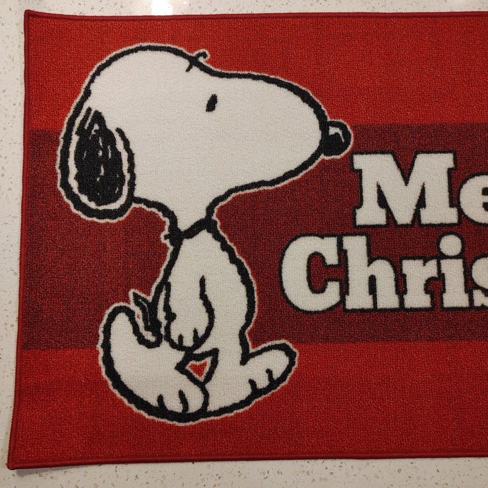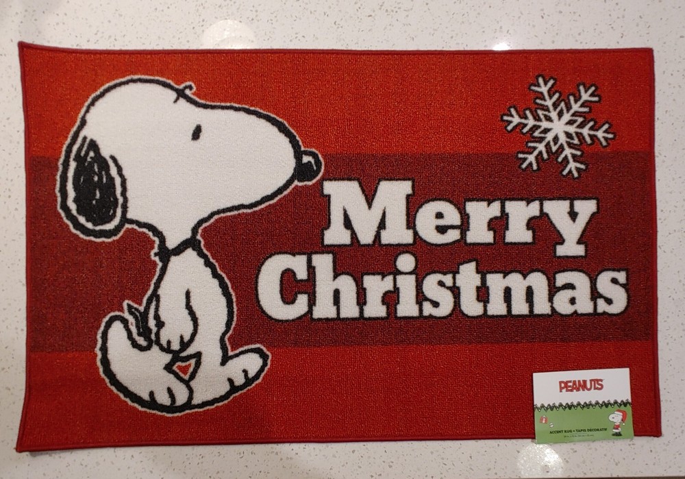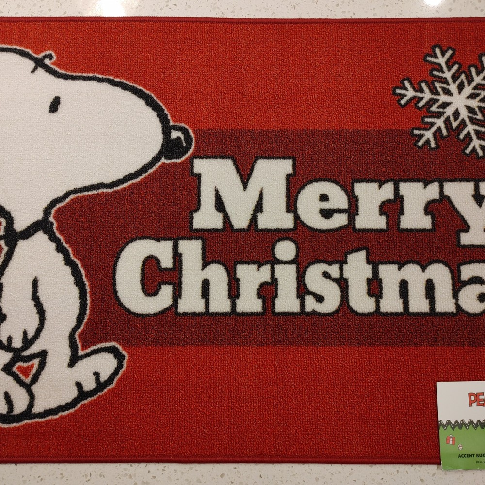 New with tags Peanuts Accent Rug Size: 20 in x 32 in Peanuts Snoopy Holiday Christmas Decorative Accent Rug Mat 20" X 32" This is a lightweight accent rug Mat will be folded for shipping All Items are stored in a Pet Free, Smoke Free, Extremely Clean Environment Sorry, no returns