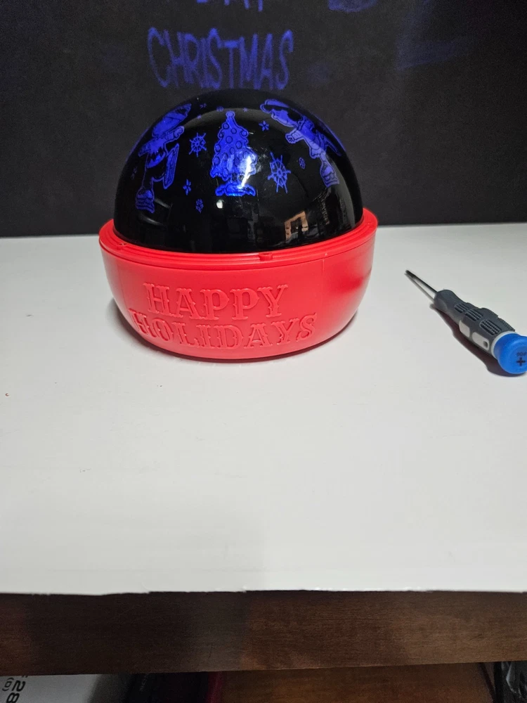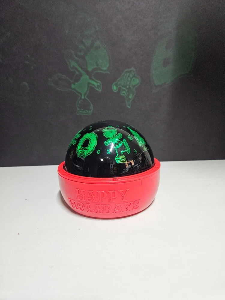 Snoopy Peanuts LED Light Show Projection Shadow Light Christmas Indoor Red Good condition. Works fine. Requires 3AA Batteries. 3 modes. Off, Stationary on. Mobile on. I'm not sure how well it would work outside, but this was meant to be on inside the home.