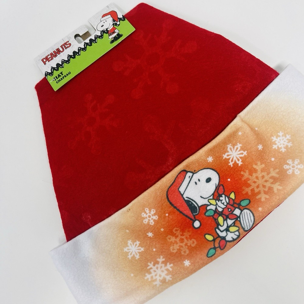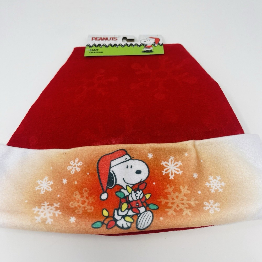 PEANUTS Snoopy Red Santa Hat Cap Pom Snowflake Imprint 15x12” Tangled Lights NEW