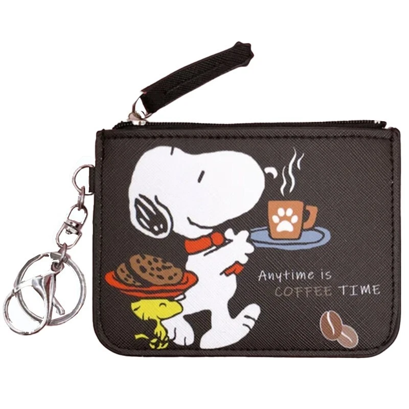 This listing is for 1PC of Snoopy cartoon character themed coin purse wallet keychain Features the adorable Snoopy and Woodstock having "Coffee Time" on the front Zipper closure compartment Clear ID sleeve pocket at the back Size: measures approximately 12 cm (Length) x 9 cm (Height) Color: Multicolor Material: Polyurethane