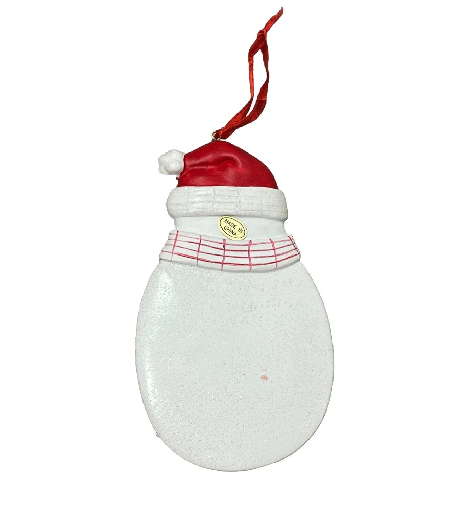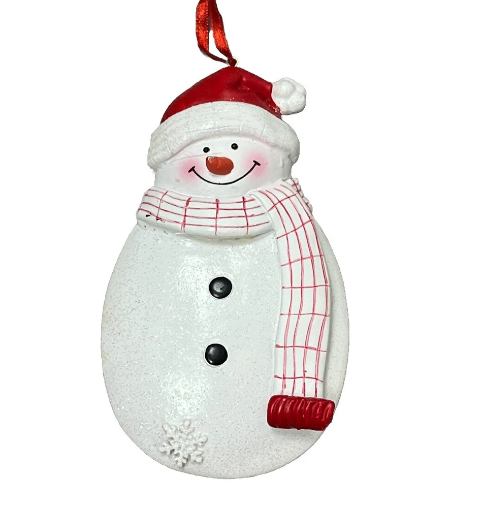 Glitter Snowman Hanging Christmas Tree Ornament 5x3 inch. tiny paint chip on nose
