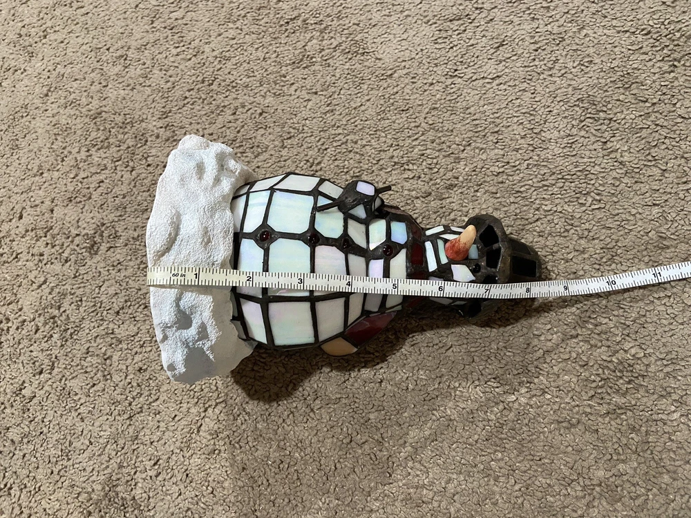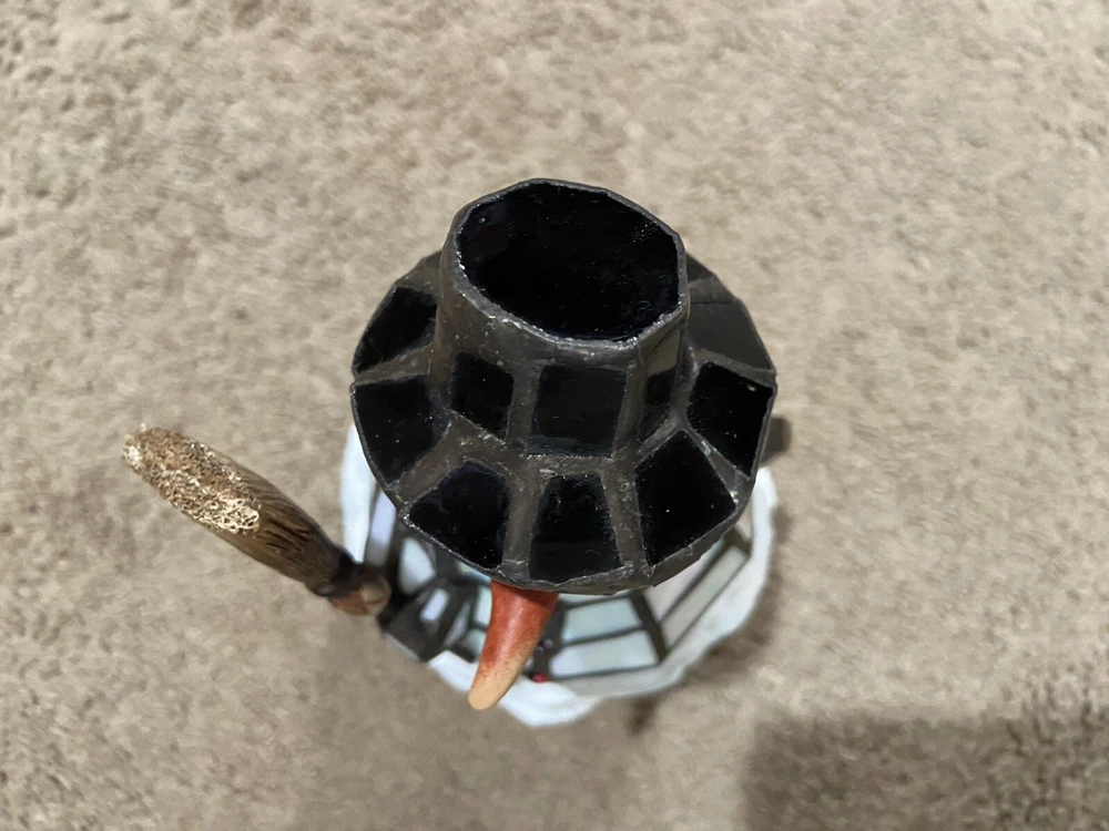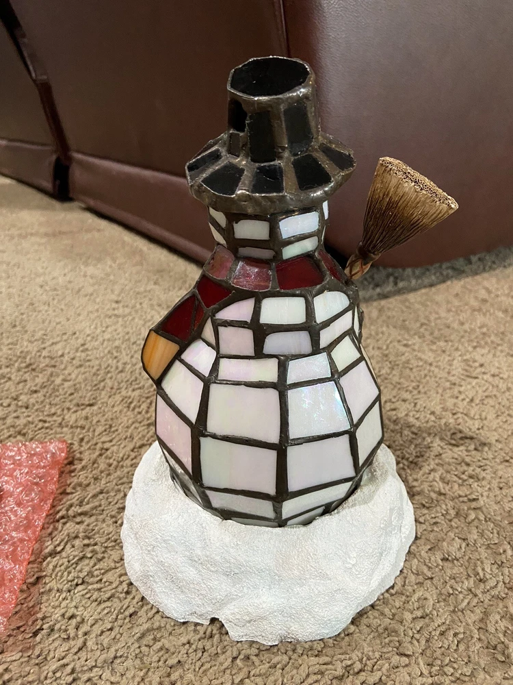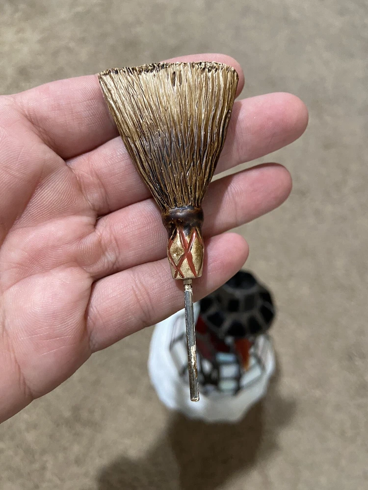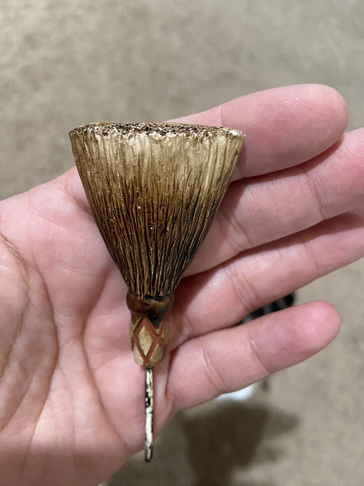 I’m not sure the maker because I cannot find the same one. This one is nice because it has the nose, base and broom in a different material. The brown is removable so you have to be careful. It to drop it. There may be minor wear especially to these other materials but not major or noticeable flaws. Tested and works. Has the lightbulb and cord. Measurement is approximate. Sold as is, please ask any questions