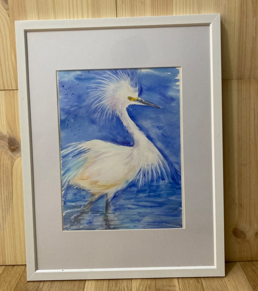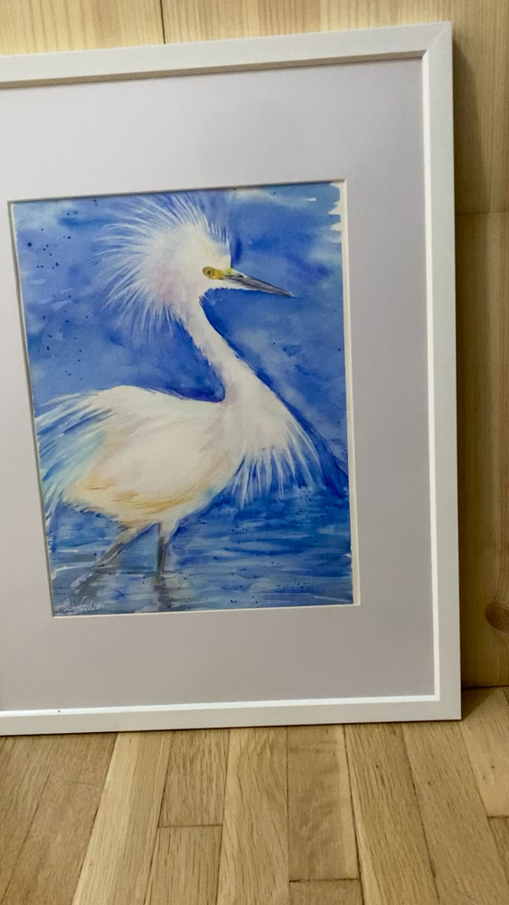 Snowy Egret . Watercolor original painting . Not a print or a copy . Cold pressed acid - free 100 % cotton watercolor paper . Signed on a front and a back by artist Liz Altin . Size 9 x 12 inches . The painting comes in a quality zip lock clear bag , strong board and is well protected . Not framed .