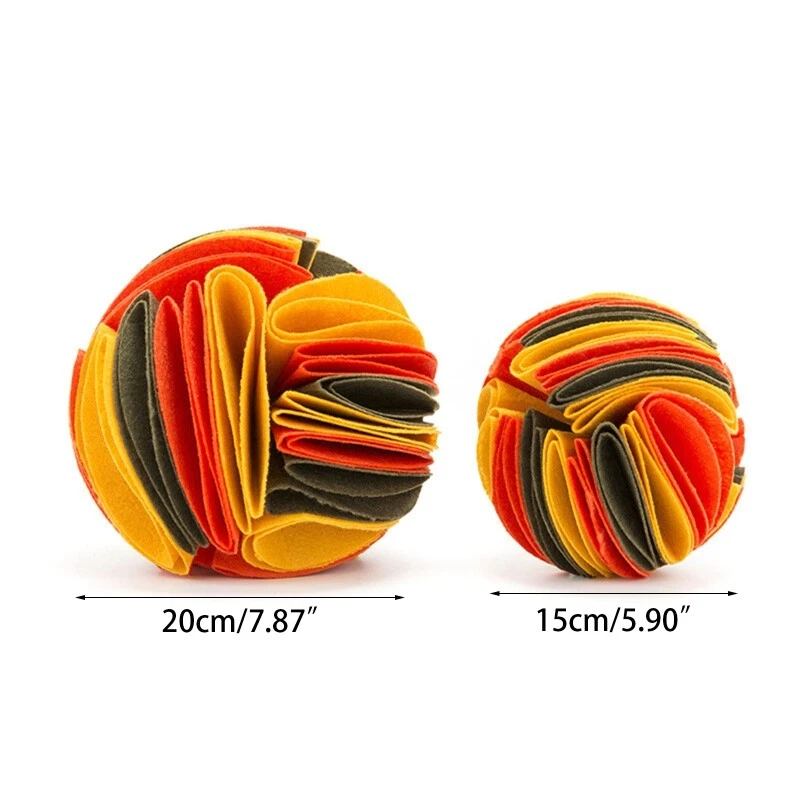 Features: and high The main fabric of the olfactory bulb is environmentally friendly felt cloth, which is soft and skin-friendly, environmentally friendly, and supports machine washing. The olfactory bulb is upgraded version of the traditional olfactory pad. It is more difficult for dogs to get Therefore, the dog gets used to smelling the for the first for time and puts on the It's easy to find easy place for dogs. It has been in the and can be put into the which moderately increases the difficulty of dog Sniff the balls from many folded circles, there are many deep collections, and the owner can hide between the fabrics to encourage your pet to smell them. The difficulty of foraging, the dog is looking for roots according to the smell, while eating the Easy to store, small in size, the smaller the the more concealed, the harder it is. It is excellent concentrated toy. Specifications: Felt Cloth Color:White Red Blue, White Red Green, Yellow Red Brown, Rainbow Color, Brown Green Size: Approx. 15 for cm/5.91 inches Size: Approx. 20 for cm/7.87 inches Package Includes: 1 x Dog Snuffle note: 1.Please allow 0-2cm errors due to manual measurement, make sure that you do not mind before you order. 2.Due to the difference between different monitors, the picture may not reflect the actual color of the item. 3.Other parts are not included. Thanks for your understanding.