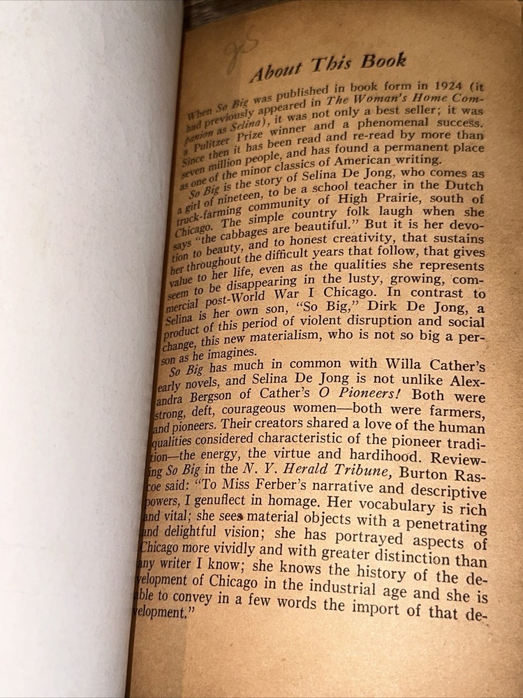 So Big - Edna Ferber - 1947 First Edition VTG Paperback - Penguin Books 639. Shipped with USPS Media Mail.