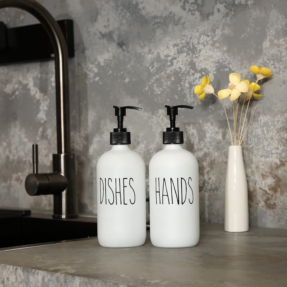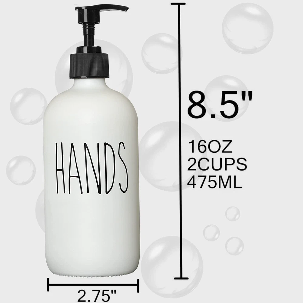 MOMEEMO Soap Dispenser Set 2 Pack, Contains Dish Soap Dispenser and Hand Soap Dispenser. 16 Oz Glass Soap Dispenser with Black Plastic Pumps. (White) HANDS & DISHES - With the Hands and Dishes label, you’ll never mix up or get asked “Which Soap is Which?”. The label is not only good for distinction but also looks beautiful. FARMHOUSE STYLE - This farmhouse soap dispenser set is both decorative and practical. Whether you're looking for any farmhouse kitchen decor or modern farmhouse bathroom decor, this rustic soap dispenser adds that special touch to everyone's interior. VERSATILE & REUSABLE - These can be used anywhere in the house. From soap dispenser bathroom to dish soap dispenser for kitchen. This glass soap dispenser with pump can be used wherever soap is needed. EXCEPTIONAL QUALITY - The kitchen soap dispenser and bathroom soap dispenser are made of glass, matched with black plastic pumps, will not rust, can be refilled, and is reliable. SATISFACTION GUARANTEED - Whether you are not satisfied for any reason, please contact us, we will do our best to do it well. SHIPPING Domestic Buyers - We have confidence in our products, but if you are not fully satisfied please contact us within 30 days of purchase and you will get full refund. - We ship within 3 business days of payment, usually sooner - We offer FREE shipping on all orders! - We only ship to the lower 48 states, no APO/FPO addresses or PO Boxes allowed International buyers – please note: Import duties, taxes, and charges aren't included in the item price or postage cost. These charges are the buyer's responsibility. - Please check with your country's customs office to determine what these additional costs will be prior to bidding or buying. * Order Cancellation Policy ** You can return a product for up to 30 days from the date you purchased it. 1. The seller reserves the right to cancel the special case only due to eBay cancellation fee. 2. The decision of seller is the final. 3. The seller will respond to the cancellation request within 2 business days. Please wait for the result of cancellation. 4. In case the cancellation is not completed by some reasons, the buyer can follow the options below to get the refund. 4.1 The buyer can reject the item when it arrives. 4.2 The buyer can send the item back to the seller within 30 days If the buyer receives item (USA Shipment ONLY). The seller will provide the FREE return label to the buyer when the buyer opens " Return Item" case on eBay by using the reason as "Change my mind" ONLY. 5. When buyer has placed the order. The order will be processed and completed by automatic warehouse system within 5 minutes. In case that buyer sends the cancellation request after 5 minutes of placing the order, the request will be rejected. **Sending direct message to cancel the order is not allowed for every case.* Return Policy For the return case - If buyer would like to return the items for refund or replacement, please CONTACT SELLER to receive the free return label from seller. The refund or replacement will be processed with the tracking number of return label which is provided by seller only. The other ways of return which are not approved by seller will not be processed for the refund or replacement.