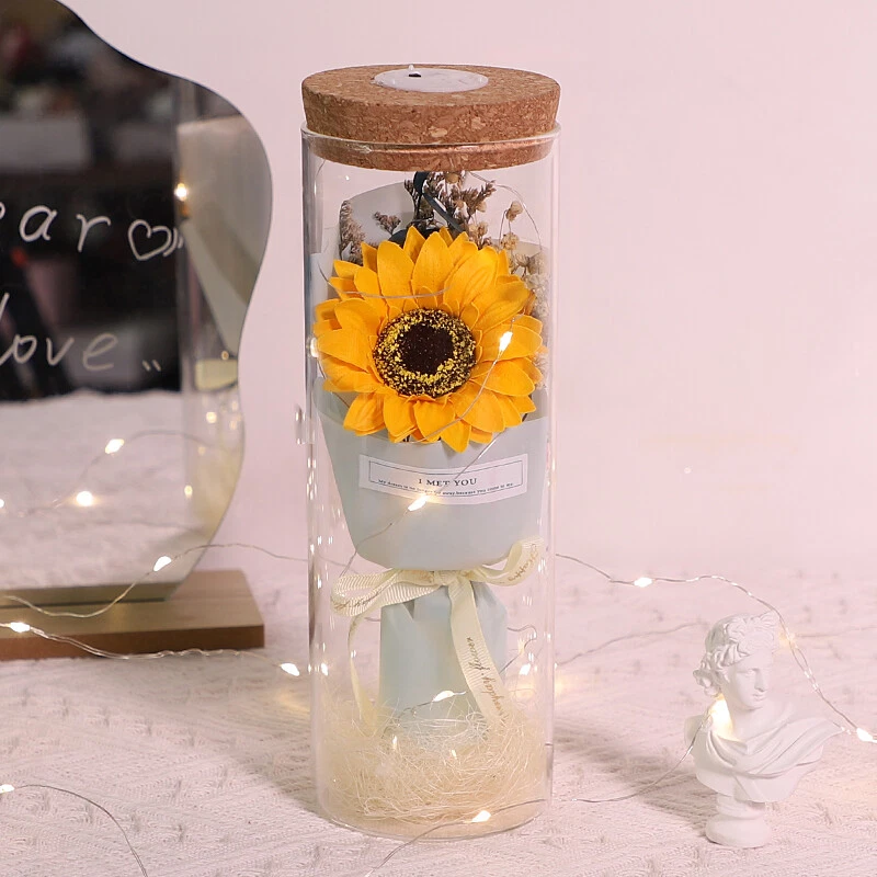 Soap Flowers Gift Box Bouquet Preserved Flowers in Glass Gifts for Women