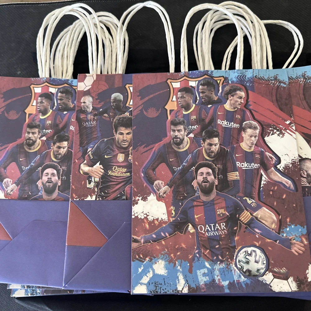 Get ready to score a goal with these Soccer Candy Bags in a pack of 15, featuring Messi and Barcelona. Perfect for any soccer-themed party or gift giving, these candy bags are sure to make your guests and loved ones feel like champions. Made for candy, treats, or small gifts, these bags are a great way to add a sweet touch to any occasion. With a fun soccer design and the iconic Messi and Barcelona branding, these bags are a must-have for any soccer fan. Fill them up with your favorite sweets or small party favors to create a unique and personalized gift. Whether you're hosting a soccer-themed party or sending a gift to a fellow soccer enthusiast, these Soccer Candy Bags are the perfect choice.
