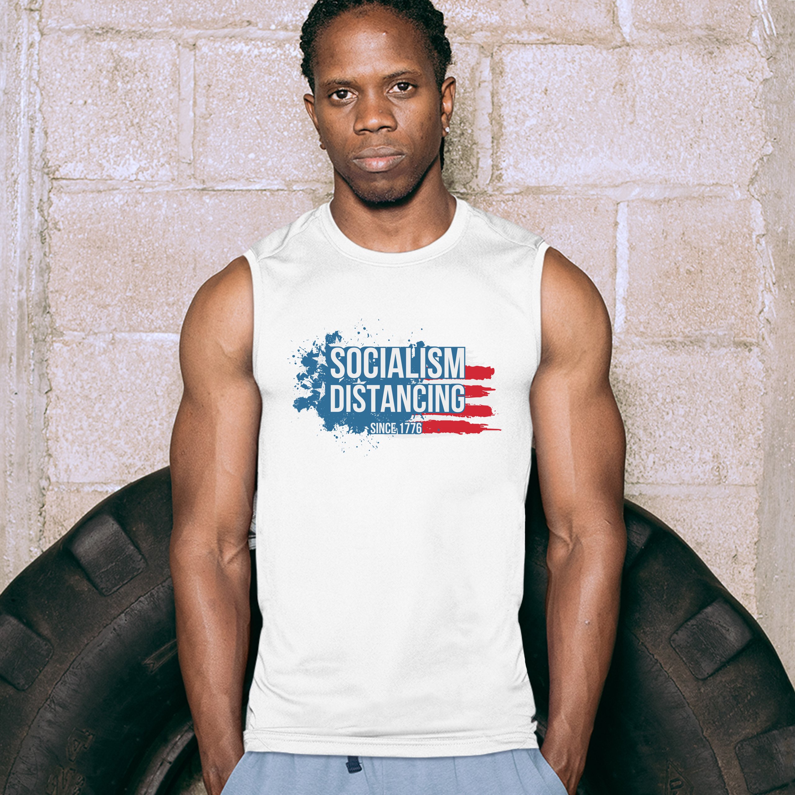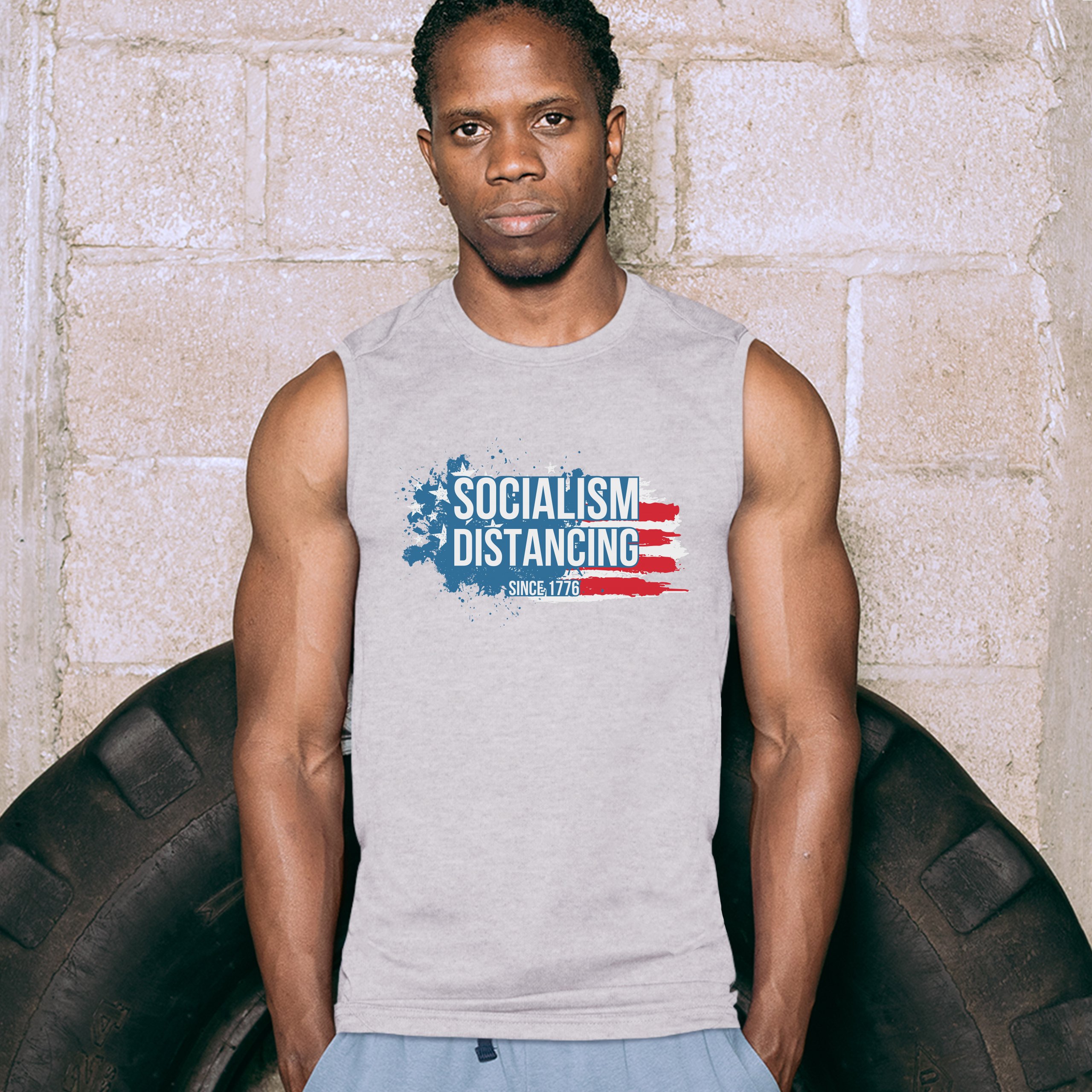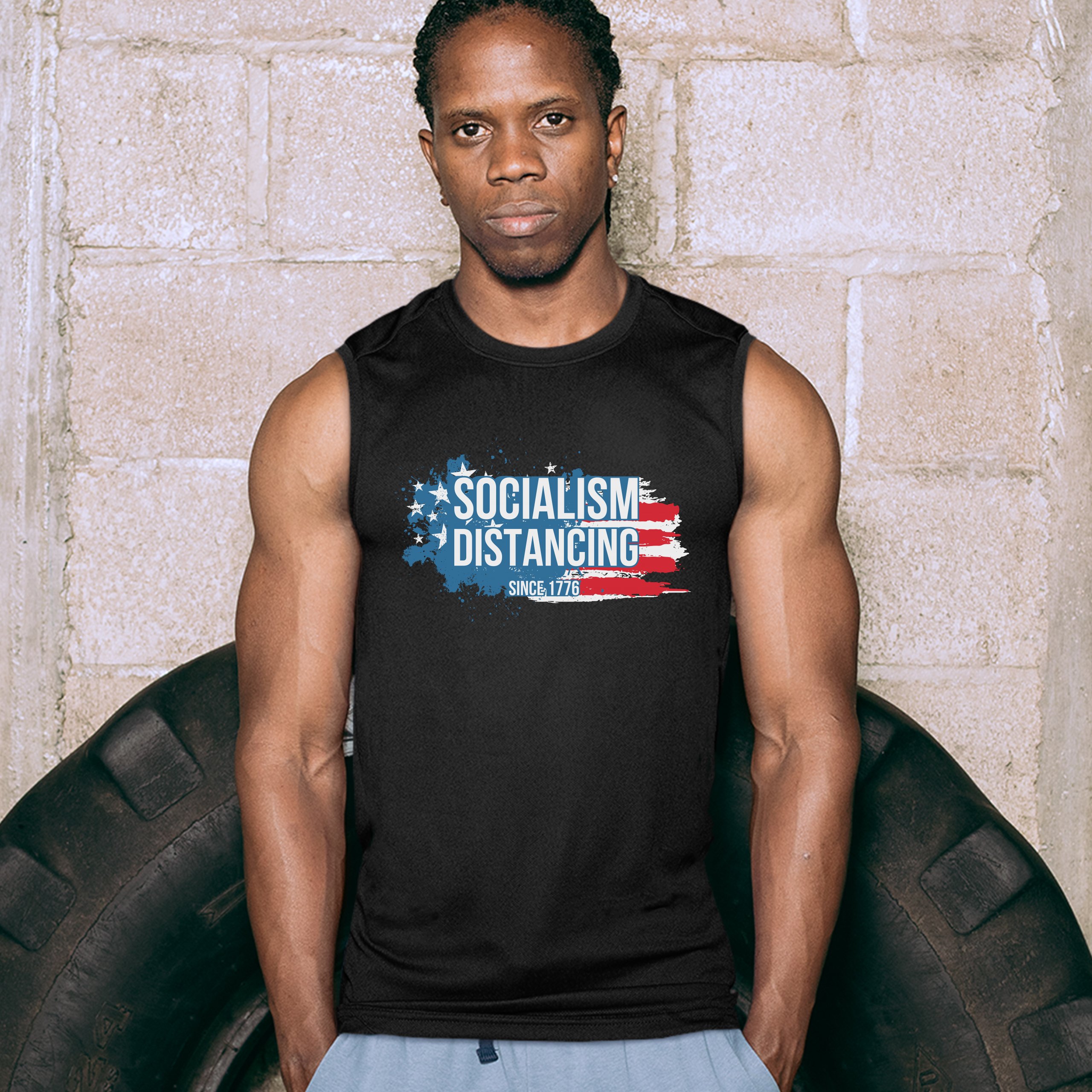 Fast & Free Shipping HIGH QUALITY 1 DAY HANDLING Socialism Distancing Since 1776 Muscle Shirt American Flag Patriotic Men's ITEM DESCRIPTION Brand New Sleeveless T-Shirt High Quality Print Classic Fit 100% Pre-Shrunk Cotton Sport Grey : 90/10 cotton/polyester Soft Fabric Printed in the USA Also Available In WASHING INSTRUCTIONS: turn inside out and wash in cold water on a delicate cycle of your washing machine. Try to avoid dryer or set it on low heat. To minimize shrinkage we recommend to air dry. PLEASE NOTE: The print may appear smaller on larger sizes. Due to the many variations in monitors and browsers, actual colors may vary slightly from what appears online. PAYMENTS: We accept the following payment methods: Paypal, All Major Credit Cards (processed through eBay's Payment System, no account necessary). We do not ship package until the payment is cleared. if you have a problem with payment, please contact us. SHIPPING: We offer FREE domestic shipping within the continental US! Your order will be shipped within 1 business day of receiving payment (Monday-Friday) Shipping services we offer: Domestic Orders: USPS First Class Mail, Priority Mail and Express options. International Orders: USPS First Class Mail, Priority Mail and Express options. We are NOT responsible for any foreign customs duties or taxes. We do not refund postage for unclaimed, undeliverable or refused packages. If a package is returned as undeliverable unclaimed or refused, it is the customers responsibility to follow up with the postal carrier. In the very unlikely event that your item is lost or damaged during post, then WE are responsible and will issue either a full refund or replacement. RETURNS: If you are not completely satisfied with your purchase, you can return the item within 30 days and get a full refund if the item is defective, damaged, or an error is made on our end. If you would like to exchange the item, please contact us through eBay Messages. All returns must be initiated through eBay Returns System. If 30 days have gone by since your purchase, unfortunately we can’t offer you a refund or exchange. And returned item can be shipped back to customer at customers expense, or will be disposed within 7 days. To be eligible for a return, your item must be unused, unwashed and in the same condition that you received it. Custom made items (including custom images, writing or other customization requested by customer) are not eligible for a refund or exchange. Once your return is received and inspected, we will notify you of the approval or rejection of your refund. If approved, your refund will be processed, and a credit will automatically be applied to original method of payment, within 3-4 days. All payments and refunds are processed by eBay's Payment system. If a refund has been issued, but you do not see the funds in your account within 3-4 days, please contact eBay Support. You will be responsible for paying for your own shipping costs for returning your item. Shipping costs are non-refundable. if you receive a refund, the cost of return shipping will be deducted from your refund. Depending on where you live, the time it may take for your exchanged product to reach you, may vary. You should consider using a trackable shipping service or purchasing shipping insurance. We don’t guarantee that we will receive your returned item. Visit our ebay store to see more amazing items T-Shirts Sweatshirts Tank Tops