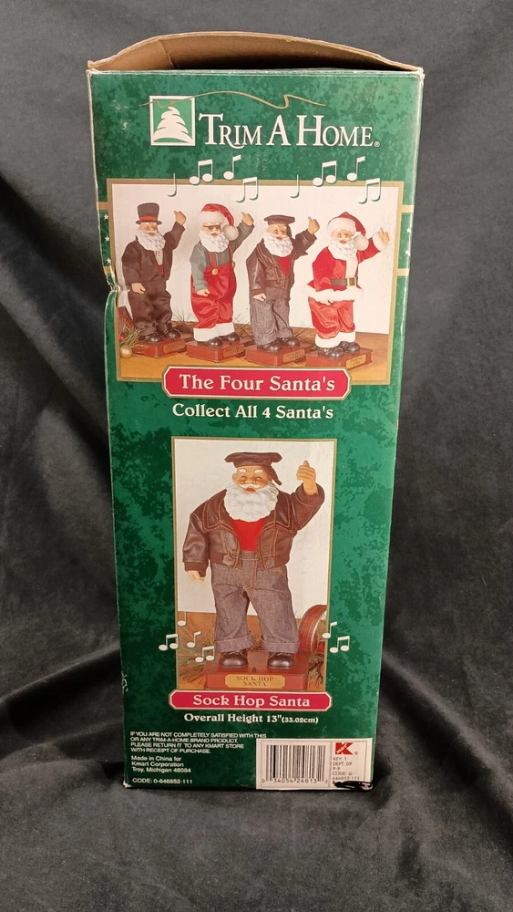 The "Sock Hop Santa Animated Dancing T.L. Toys HK LTD Christmas Biker" is a festive and entertaining figurine featuring an animated Santa character in a hip hop style, manufactured by TL Toys in 1991. Standing at 13 inches tall, the colorful Santa is designed to dance and play music, making it a fun and unique decoration for Christmas celebrations. This item does not require any additional parts and is in good working condition, adding to its appeal for collectors and fans of animated holiday decor. Thank you for visiting my listing today and thank you for your interest in this item! My goal is to have a pleasant transaction resulting in a satisfied customer. I hope any transaction between us leaves you with a feeling of confidence knowing you can trust me and the items I offer here. *Most if not all my listings are set to accept offers. Feel free to send an offer and I will be happy to consider it!! *Please contact me with any questions or concerns and I will be happy to help. *Always examine the photos carefully, and if in doubt, email me with any questions you may have. *Please note that condition statements are offered as a guide only. They will always be somewhat subjective and reflect our opinion, which may not necessarily agree with someone else's opinion. PLEASE READ: I aim to please and I want my buyers to have a positive transaction with me. If you have questions, concerns, or special requests related to any of my items I hope you will contact me so we can work them out to your satisfaction. I sell my items to give you a great item at a decent price while making a little profit at the same time. If you feel the item you are interested in is too pricey do not hesitate to send me a fair offer and I will consider it. My goal is to satisfy your needs and mine so both parties can benefit. SHIPPING: If you prefer a different shipping method or company please contact me and I will do all I can to make that happen. If you have concerns or requests about the packaging of your item contact me and I will do all I can to accommodate them. Shipping costs are based on location in each state or country, the costs always differ. After I have received your payment I will ship your item out within 3 business days or less excluding weekends and holidays. BEFORE PURCHASING & BIDDING: **Please see all the pictures. I do not have great photography skills but I try to get the most accurate photos I can. If you are unsure about something you see in a photo contact me so I can do what I am able to answer your concern about the item. **I cannot stress enough that if you have any questions or concerns please contact me before purchasing and bidding. Communication can solve so much. **As a customer myself, I understand the meaning of customer satisfaction and my goal is to have nothing but satisfied customers. If you are not unsatisfied with your purchase I ask that you please contact me so I can take care of your issue. My goal is for you to be 100% satisfied. INTERNATIONAL BUYERS WELCOMED - PLEASE NOTE: I welcome International buyers! Please be aware that any custom/duties/taxes that the parcel might incur once it is out of the USA are the responsibility of the buyer. Please check with your country's customs office to determine what these additional costs will be prior to bidding or buying. Please refer to the eBay Site Map for more information if needed.