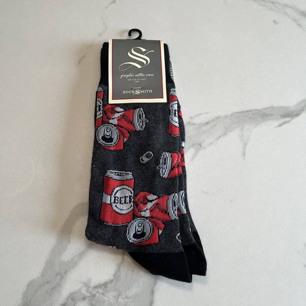 Elevate your sock game with these Socksmith Men's Crew Socks featuring a fun and unique beer can design. Perfect for casual occasions, these socks come in a charcoal heather grey color and are made from a comfortable cotton blend material. The one size fits most size type ensures a comfortable fit for men with shoe sizes ranging from 7 to 12.5. Machine washable for easy care, these socks are perfect for all seasons and can be worn in winter, summer, fall, and spring. The fun and hipster design makes them a great gift for the beer-loving dad in your life. Add these socks to your collection and enjoy the comfortable and stylish wear they provide.