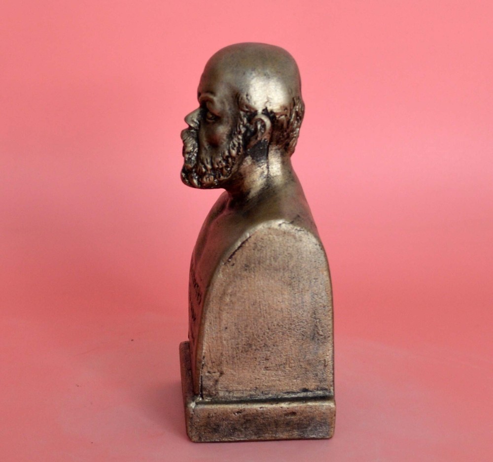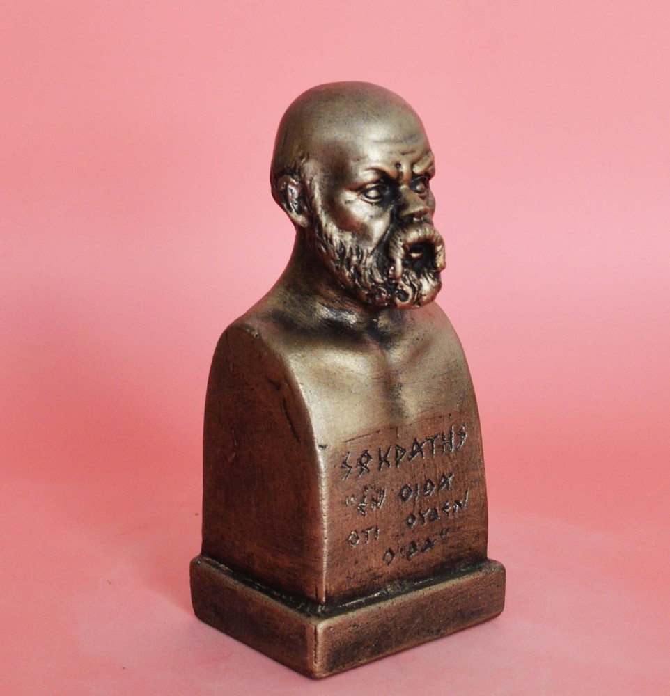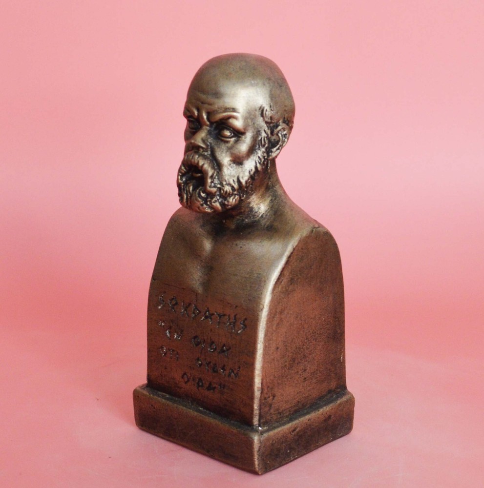 SOCRATES THE PHILOSOPHER Socrates was a classical Greek (Athenian) philosopher credited as one of the founders of Western philosophy. He is an enigmatic figure known chiefly through the accounts of classical writers, especially the writings of his students Plato and Xenophon and the plays of his contemporary Aristophanes. Plato's dialogues are among the most comprehensive accounts of Socrates to survive from antiquity, though it is unclear the degree to which Socrates himself is "hidden behind his 'best disciple', Plato" Please be aware that, due to the fact that our products are either individually cast, carved, hand painted and hand finished, there will inevitably be minor variations in size, colour and texture.(B58-P) Socrates Details: Condition: New, Handmade in Greece Material: Casting stone Height: 11 cm(4.3 inches) Width: 5 cm(2 inches) Weight: 250 g ********