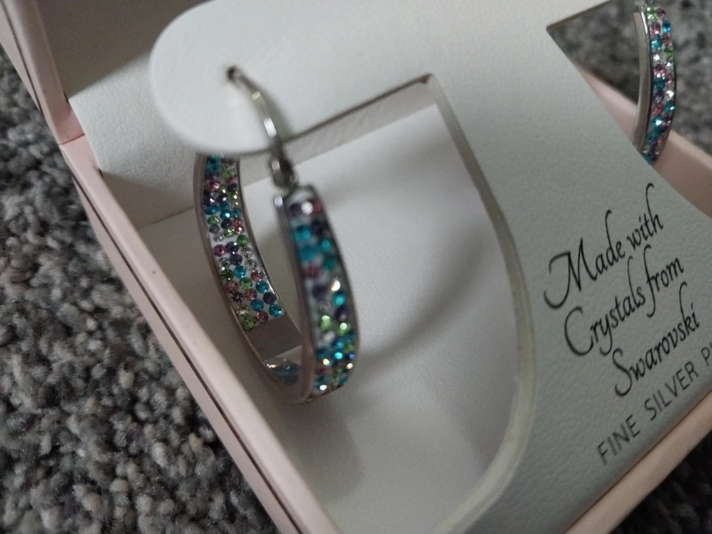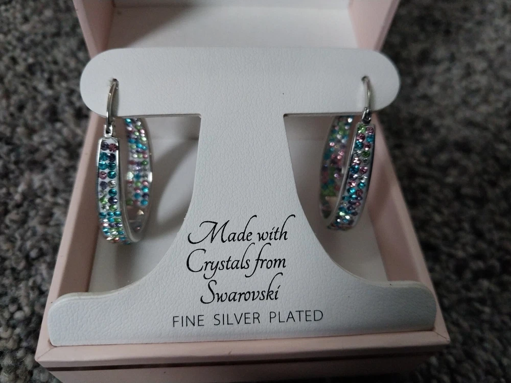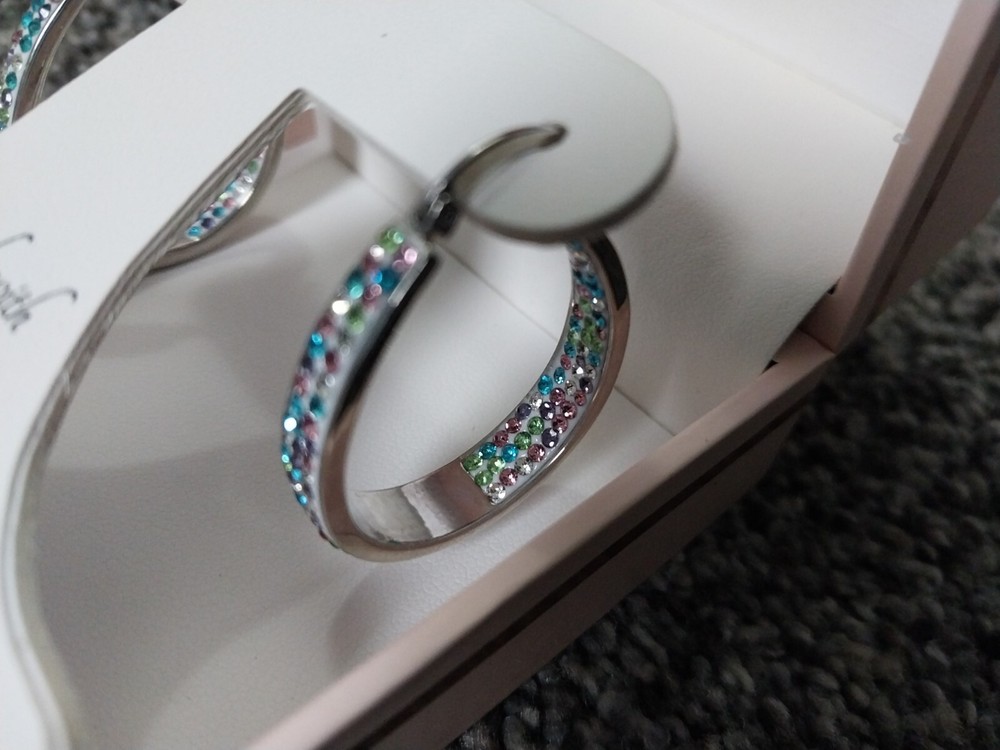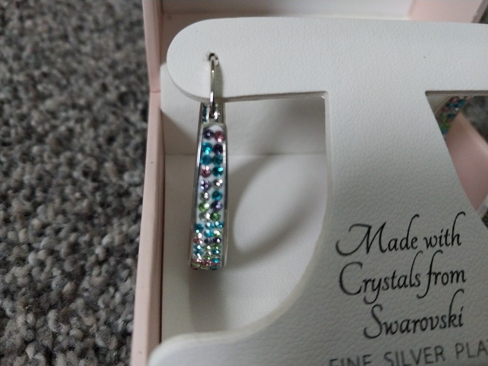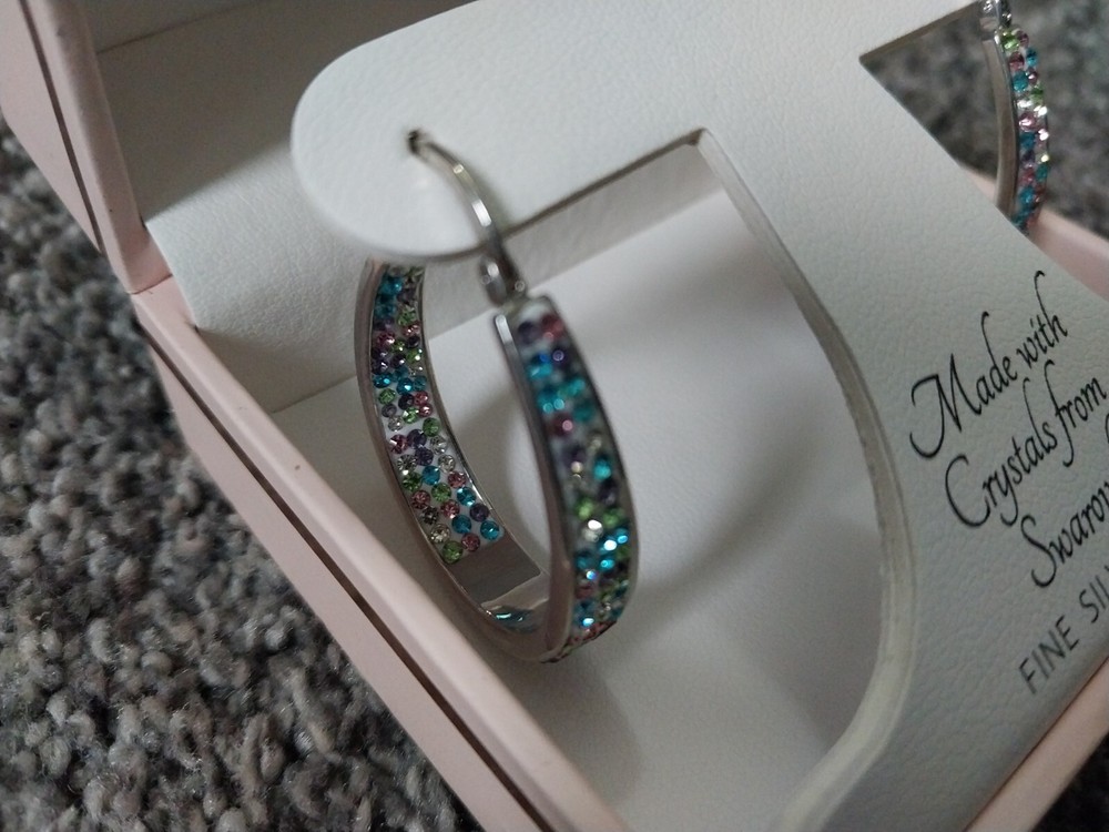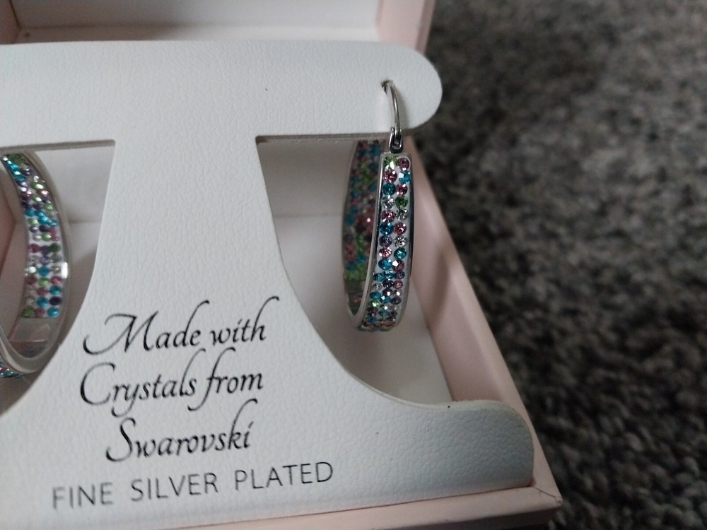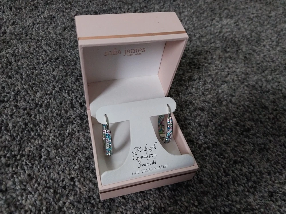 Sofia James Swarovski Fine Silver Plated Premium Crystal Hoop Earrings New.