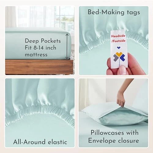 Menu 1. We require immediate payment. 2. We currently accept payment via eBay managed payments only. 3. Once payment is cleared, we will dispatch your shipment within 1-3 business days. Please refer to the "Shipping" tab for more information regarding shipping speed to your destination. Soft 100% Cotton Sheets King Size Bed Sheets Set with Deep Pockets, Seafoam Sheets, King Sheets Set with Sateen Weave, Cooling Sheets (Seafoam) Product description WHAT IT IS: King Bed Set - 4 Piece bed sheet set made from naturally comfortable 100% cotton sateen fabric. This soft, breathable & cooling bedding and pillowcases set has an ideal weight and is designed for long-lasting comfort, all year long. WHAT IT IS NOT: These king size sheets are not synthetic or polyester blended bed sheet sets. These are made using the finest cotton grown in India and all our cotton bedding & pillow-cases are loved by customers for their superior quality, softness, and comfort. WHAT COMES IN THIS 4 PIECE KING SIZE SHEET SET: 1 flat top sheet, 1 fitted bottom sheet with 14" deep pocket, and 2 king-sized pillowcases. The envelope closure pillowcases ensure a neat look. Our bottom fitted sheet has an all-round elastic and a "head/foot indicator" for easy bed making experience. WASH CARE & SUPPORT: These king size cotton bed sheets are easy to machine wash & dry & gets softer with each wash. They have been tested for shrinkage, pilling & color fastness. Buy risk-free as you can return the sheet set if you dont like them, even if they are washed. WHAT MAKES US TRUSTWORTHY: Our bedding collection is certified as STANDARD 100 by OEKO-TEX to ensure no harmful substances get in your bed. We use non-plastic boxes for our packaging & are committed to mindful & ethical processes. PLEASE MESSAGE US IF YOU HAVE ANY OTHER QUESTIONS, AND MANY THANKS FOR READING ALL OF THIS. Copyright ©#. All Rights Reserved.