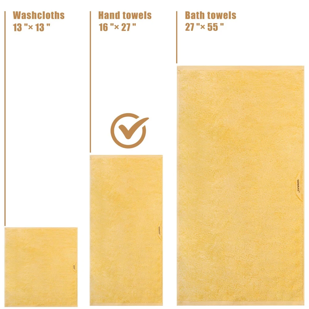 Yellow Hand Towels for Bathroom, 100% Cotton Towels with Hanging Loops, Hotel Spa Quality Absorbent Towels, 27" L x 16" W, 4 Piece Hand Towels, Gift Box Packaging Towel Size & Color: Bathroom hand towel of 4, 27 by 16 inches. Towels are available in yellow, gray, green, purple, white, blue and colorful Features: Towels with hanging loops that are simple to hang and dry quickly. Towels are made of high quality cotton material and Siro textile technology, which is soft, fluffy, lightweight and highly absorbent Nano-Bio Lifecycle Labels: towels come with a biotag. The blue stripes on the tag change color to reflect the towel's current usage status. The color of the tag changes with factors such as time of use, usage and frequency. If two stripes are the same color, the towel is past its best-before date. A reminder to replace your towel Trusted Certified Sustainability: Towel is OEKO-TEX certified and tested for harmful substances, meeting the highest safety and environmental standards.Although there is no fluorescent substance used to make the towel's color dull, it can lessen skin harm. Use the towels efficiently in the bathroom, home, gym, beach, poolside, college dorm, salon, spa or even camping trip Difference Packaging: Packaged in a meticulous double-layer packaging.The inner layer features a sealed PE bag to guarantee pristine cleanliness during transportation and storage, offering you complete peace of mind. The outer layer showcases an aesthetically pleasing paper box design, making it the perfect gift for your loved ones How to Choose a Quality Towel: First, look for brands certified by OEKO-TEX, ensuring they meet strict standards for safety. Next, quality towels should use 100% cotton. Long fibers offer superior softness, absorbency, and durability. uses premium cotton, resulting in a plush feel and quick-drying performance. Lastly, advanced textile technology is key. Cutting-edge manufacturing enhances softness and absorbency. towels use refined techniques, ensuring tightly woven loops that withstand use while staying soft. Beyond meeting these essentials, towels also excel in lightweight, breathable, and quick-drying qualities, perfect for daily, travel, or athletic use. Shipping We offer FREE shipping on all orders! We ship within Three business days of payment, usually sooner. We use a selection of shipping services such as UPS, FedEx, USPS etc. We only ship to the lower 48 states, no APO/FPO addresses or PO Boxes allowed. Local pickups and combined shipping options are not provided at this time. Return You can return a product for up to 30 days from the date you purchased it. Any product you return must be in the same condition you received it and in the original packaging. Please keep the receipt. Payment We accept payment by any of the following methods: PayPal Please pay as soon as possible after winning an auction, as that will allow us to post your item to you sooner! Feedback Customer satisfaction is very important to us. If you have any problem with your order, please contact us and we will do our best to make you satisfied. Contact Us If you have any queries, please contact us via ebay. We usually respond within 24 hours on weekdays. Please visit our eBay store to check out other items for sale! Thank you for shopping at our store.