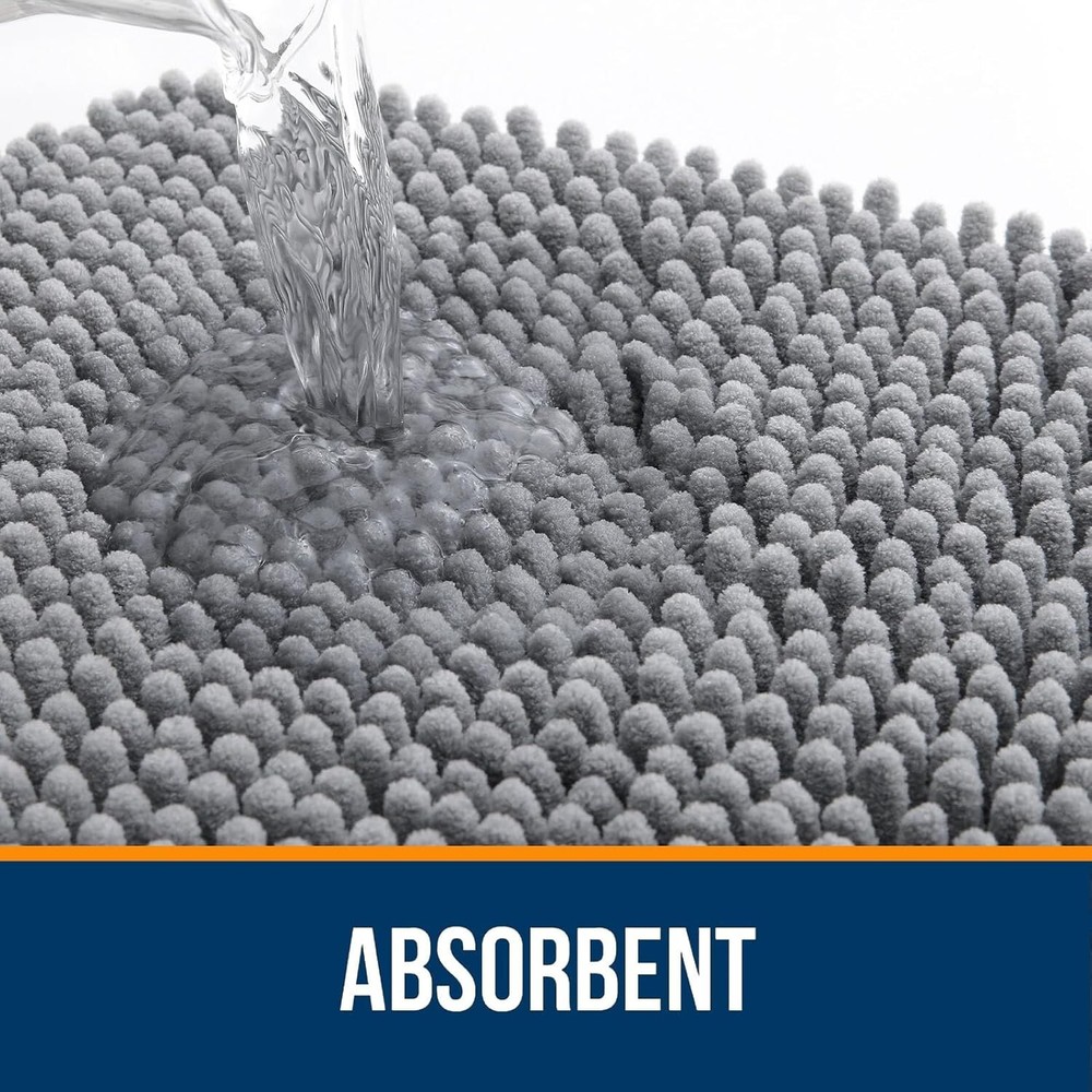 Bathroom Rugs 30x20, Extra Soft Absorbent Chenille Bath Rugs, Rubber Backing Quick Dry, Machine Washable Bath Mats for Bathroom Floor, Tub and Shower, Home Decor Accessories, Grey Soft and Plush Chenille - Wrap your feet in the softest, coziest chenille, creating a warm haven for you, your family, and even your furry friends. The plush pile not only pampers tired feet but also keeps toes delightfully toasty. Ultra Absorbent - Meet 's absorbent bath rug with dense chenille, keeping floors clean when you step out of the bath or shower. Instantly dry your feet on this shaggy rug, protecting your floor from water damage. Fade-resistant and Quick-Drying - The microfiber fabric in our rugs isn't just ultra-absorbent—it also dries quickly. These bathroom mats are a breeze to clean, and their fade-resistant quality ensures that you can machine wash and dry them as often as needed. Long-lasting and Sturdy - Our bath mat features a textured rubber backing for stability, surpassing the durability of other products using PVC or hot glue. Unlike traditional materials, our TP Rubber Backing is engineered to withstand repeated washes without compromising its integrity. WARNING: Water under the bathroom rug can cause it to slip. Keep bottom of the bath rug dry! Multi-Purpose Comfort - Elevate your bathroom experience with 's soft and luxurious Chenille Bath Rug. Versatile enough for use in the bath, in front of the sink, or anywhere in your home where you desire toe-pampering comfort. Available in a variety of colors and sizes to complement your bathroom design. A perfect addition to your bathroom, vanities, holiday homes, master bathrooms, children's bathrooms, and guest suites. CREATE YOUR HOME OASIS You will easily find rugs to coordinate with your decor!