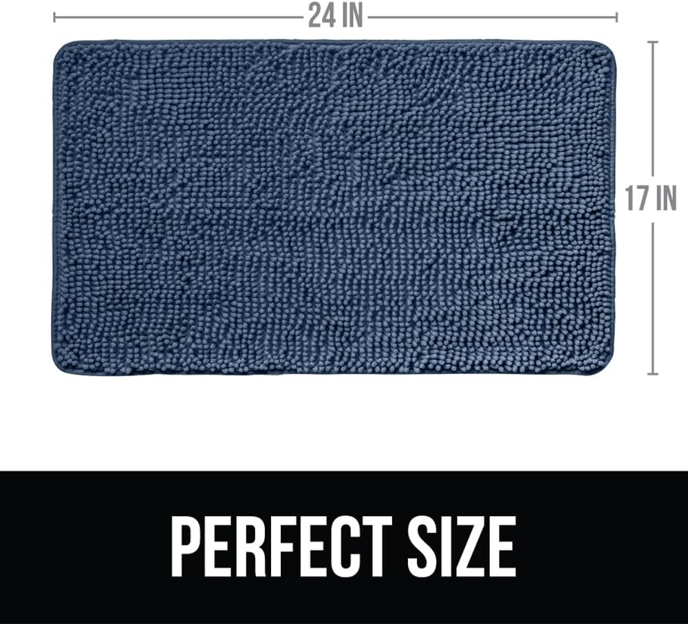 KANGAROO Bathroom Rugs, Chenille Soft Absorbent 1'5" x 2' (Rectangular), Navy Product Details Brand: KANGAROO Size: 1'5" x 2' (Rectangular) Material: Chenille Weave Type: Machine Made Item Weight: 0.5 Kilograms Pile Height: High Pile Construction Type: Machine Made Back Material Type: Thermoplastic Rubber (TPR) Color: Navy Indoor/Outdoor Usage: Indoor Theme: Occasion, Welcome, Season, Fun Is Stain Resistant: Yes Product Care Instructions: Machine Wash Pattern: Solid Shape: Rectangular Special Feature: Absorbent, Fluffy, Fade Resistant, Quick Dry, Washable Room Type: Bathroom, Conference Room, Classroom, Study Room, Dining Room Product Dimensions: 24"L x 17"W Rug Form Type: Bath Mat Style: 17" x 24" Occasion: Wedding, Graduation, Baby Shower, Housewarming, Halloween Number of Pieces: 1 Water Resistance Level: Not Water Resistant Seasons: All, Winter, Summer, Fall, Spring Model Name: KANGAROO Bath Rug Mat Age Range (Description): Teen Recommended Uses For Product: Bath Rug, Bath Mat, Bath Room Floor Rug, Bathroom Rug UPC: 811113035939 Item Weight: 1.1 pounds Manufacturer: Hills Point Industries, LLC Country of Origin: China Is Discontinued By Manufacturer: No LUXURIOUS CHENILLE: luxurious, soft pile helps soothe tired feet and shields toes from the cold floor; the density and plushness of our pile surpasses that of most other brands ULTRA ABSORBENT: thick, high pile helps to absorb moisture as you step out of your tub or shower, helping to prevent excess water from accumulating on your floors; the lush microfiber material helps to capture moisture deep within the rugs fabric fingers allowing the rug to dry quickly PERFECT SIZE: measuring 17 by 24 inches, bath rug is perfect in any kids or master bath room; in front of the bathroom sink, shower, and more MACHINE WASH AND DRY: designed and tested to be machine washed and dried many times; the ultra strong underside features durable TPR material (not PVC or glue) so you can wash and dry time after time; our rugs have also been given the Confidence in Textiles label, and have been tested for harmful substances according to OEKO-TEX Standard 100; performance, durability and emissions tested PERFECT FOR THE WHOLE FAMILY: many modern, family friendly colors to complement your bathroom décor