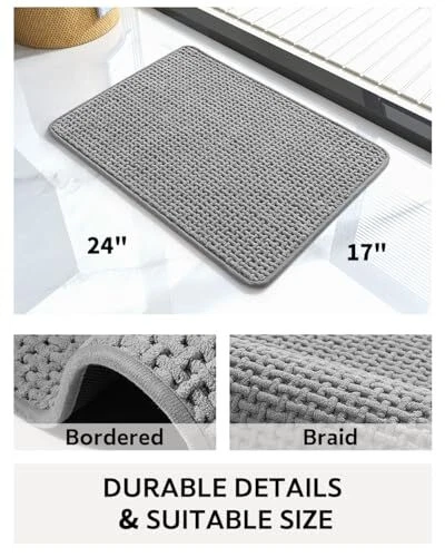 Menu 1. We require immediate payment. 2. We currently accept payment via eBay managed payments only. 3. Once payment is cleared, we will dispatch your shipment within 1-3 business days. Please refer to the "Shipping" tab for more information regarding shipping speed to your destination. -Chenille Bath Mat-Rubber Backing Bathroom Rugs Non Slip-Super Absorbent Bath Mats for Bathroom Floor-Quick Dry Bathroom Mat Thin Bath Rugs Fit Under Door-Grey 17''x24'' Product description Super Absorbent & Quick Dry: This super absorbent chenille bathroom rug acts like a sponge, rapidly pulling water into its plush fibers and drying quickly. The surface of bath mats will not always be wet even you use it frequently. Bathroom mat quick dry are Ideal for high-traffic family bathroom, without having to worry about soggy floors. Tight Braided & Soft Surface: Compared to traditional plush bath mats, this chenille bath rug features a tightly braided construction that makes surface anti-slip and will not get any bunchy. Dirt and grime don't easily get caught in it. Avoid to stepping on the wet cold tiles after the bath, these soft bathroom mats make your feet feel warm and comfortable. Rubber Backing & Non-slip: Unlike TPR backing always leak, fall apart, wad up or move around, our textured rubber backing is heavy duty and durable. It keeps bathmat firmly in place and avoid potential slipping hazards. Bath mats for bathroom will not curling up at the edges and water will not seep through the rubber bottom to the floor. Bordered & Durable: Say goodbye to fraying edges and pulled threads, each edge of the bath rugs for bathroom is bordered with a durable cloth and the trim is sewn well, don't worry the braid chenille will come undone with abrasion or pulling. It does not collapse, deform, shed hair or fade. Used and cleaned many times, this soft bathroom rugs is still as new mat. Easy to Clean & Versatile: Rug for bathroom is easy to clean, just shake of debris or clean with a robot vacuum cleaner. For deeper cleans, rinse and wipe with water or soap, then hang and dry naturally. This water absorbing bath mat is versatile, it also can be used in other areas like bedrooms, near sinks or indoor entryways. PLEASE MESSAGE US IF YOU HAVE ANY OTHER QUESTIONS, AND MANY THANKS FOR READING ALL OF THIS. Copyright ©#. All Rights Reserved.