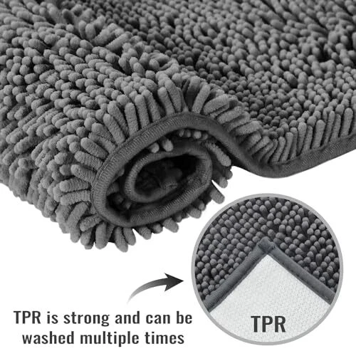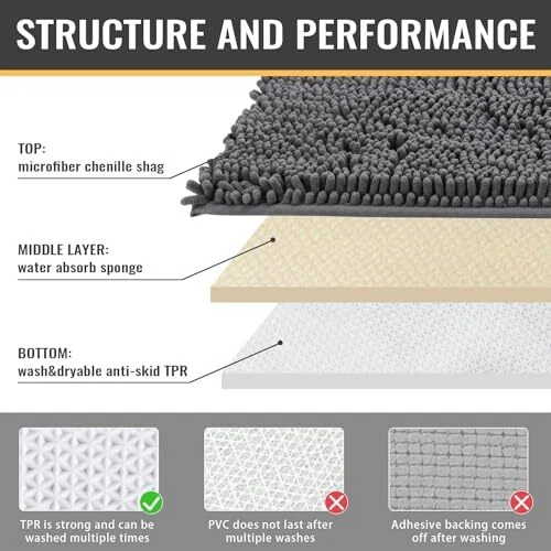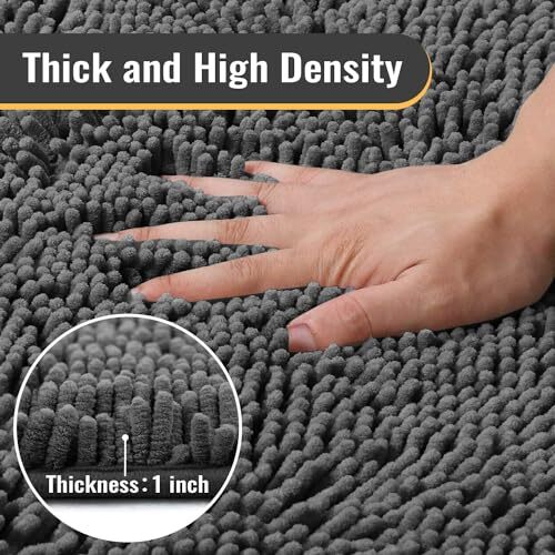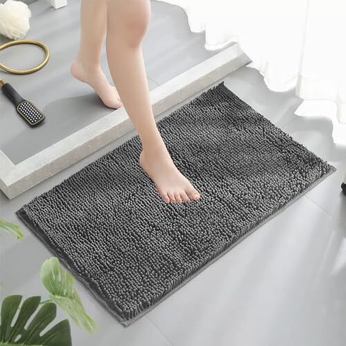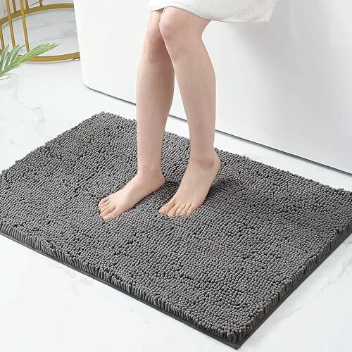 1. This chenille bath mat is incredibly soft and plush—stepping out of the shower feels like walking on a cozy cloud! The non-slip backing keeps it securely in place, and the dark gray color hides stains well. It’s easy to toss in the wash and comes out looking fresh every time. Perfect for adding warmth and comfort to any bathroom!